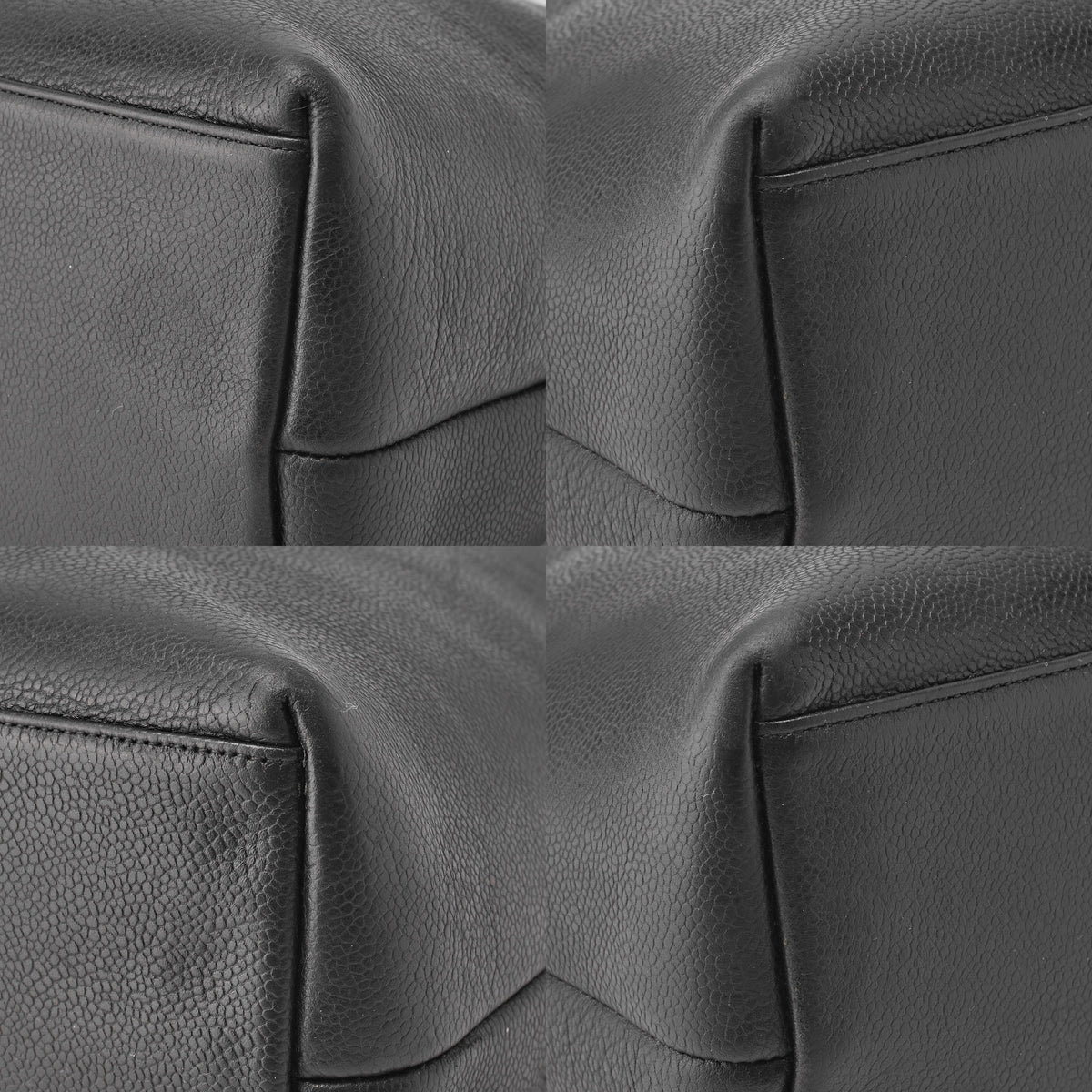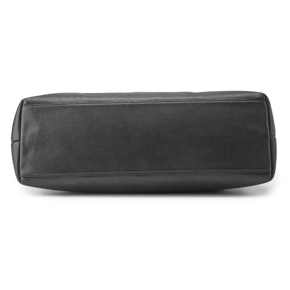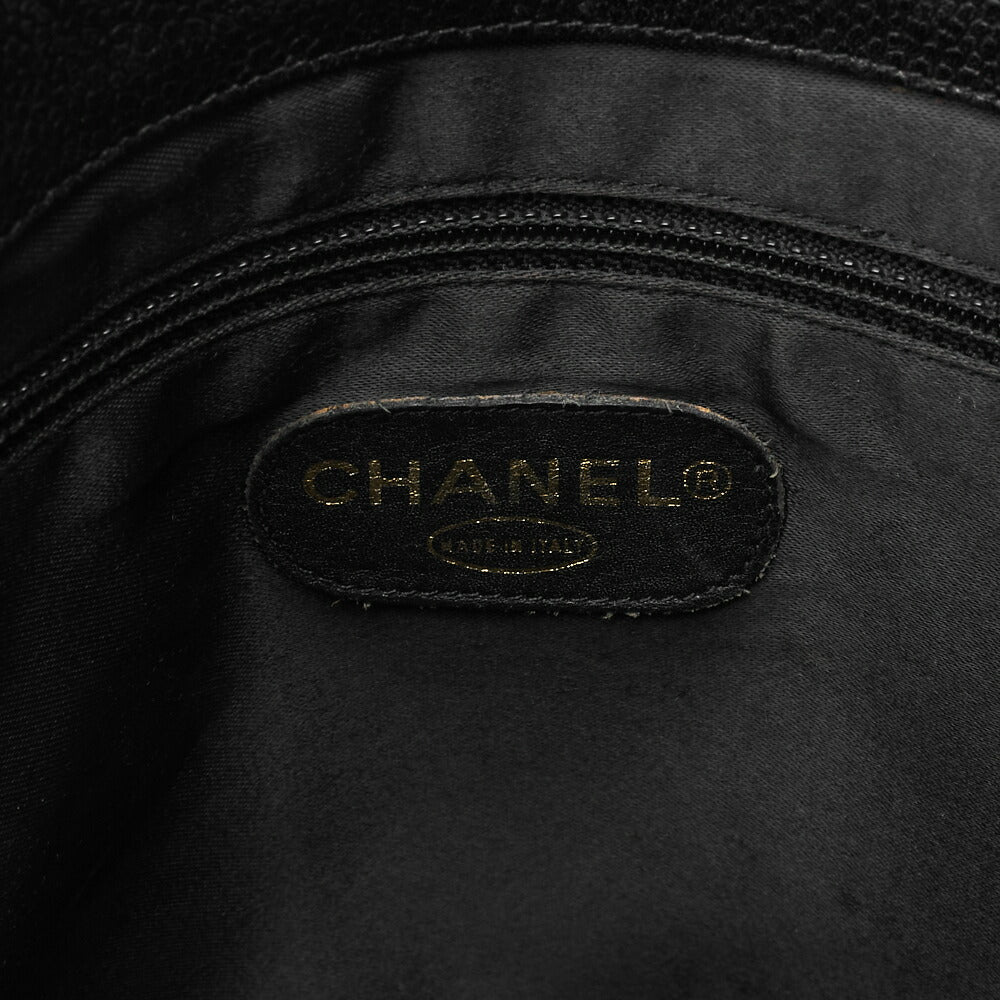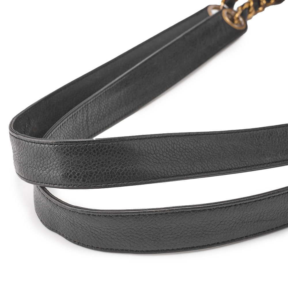 Gebrauchte Schultertasche mit doppelter Kette, Kaviarhaut, Schwarz, goldfarbene Metallteile, gebraucht