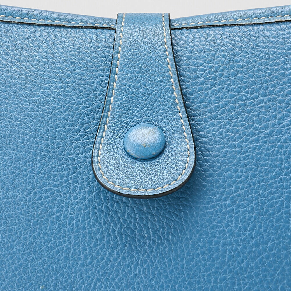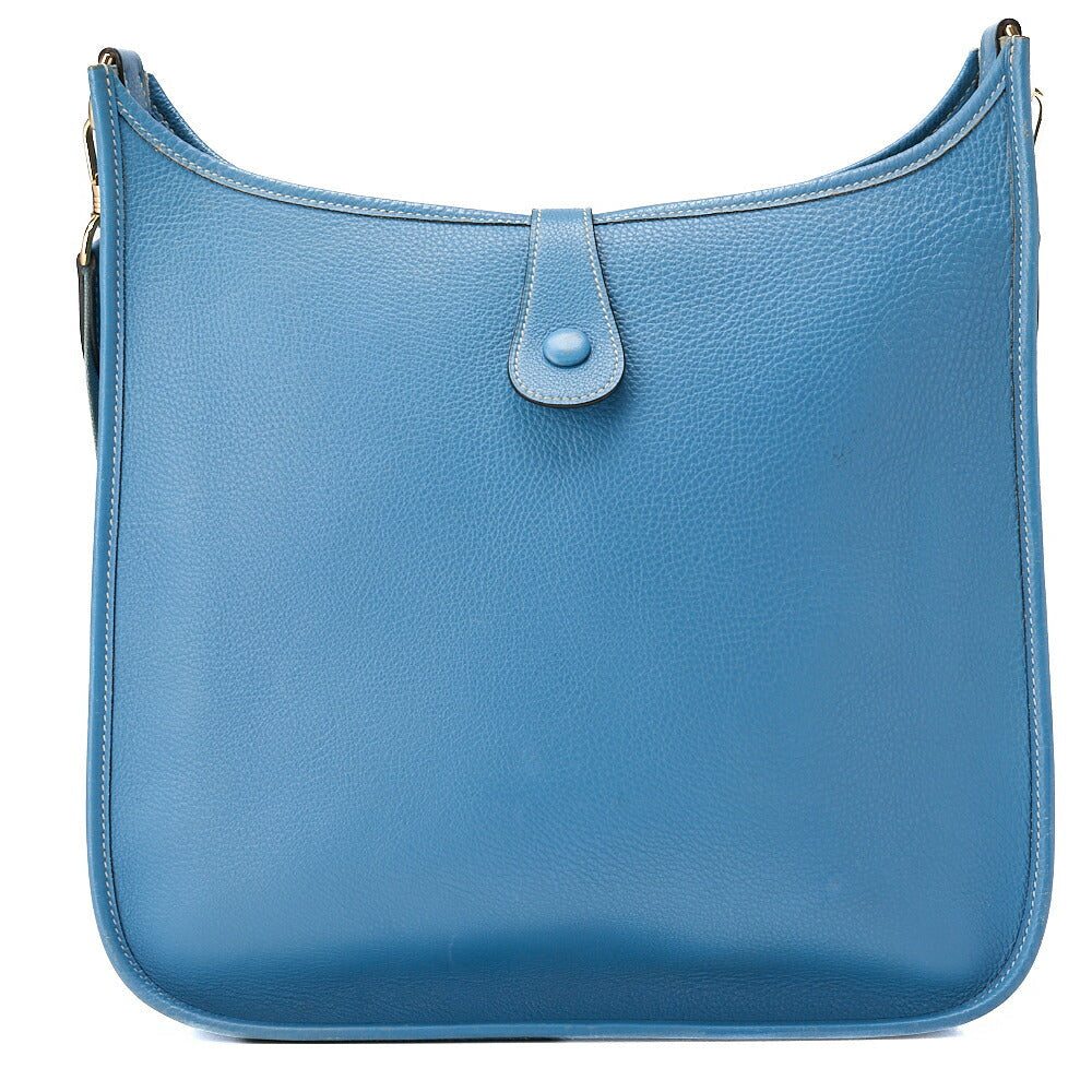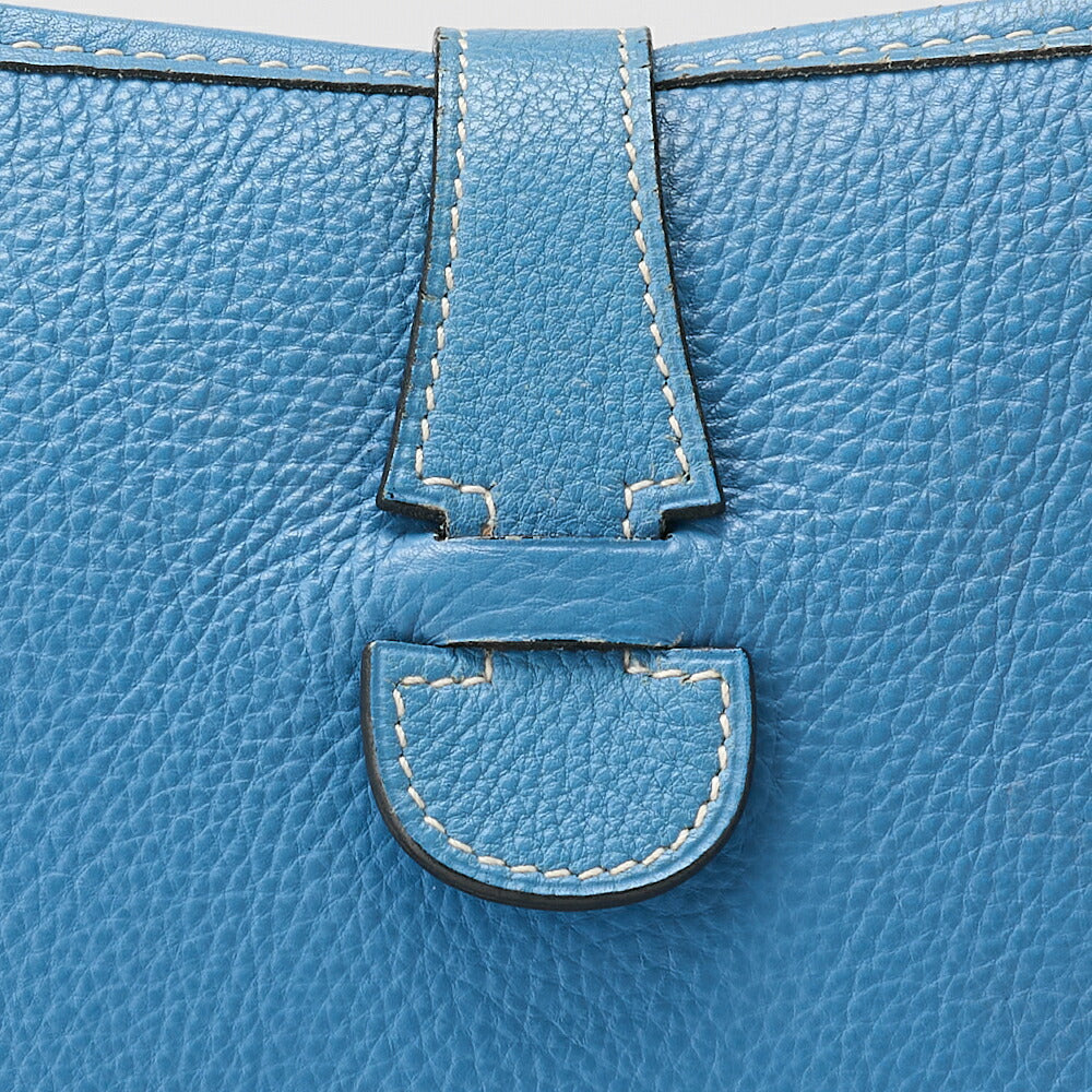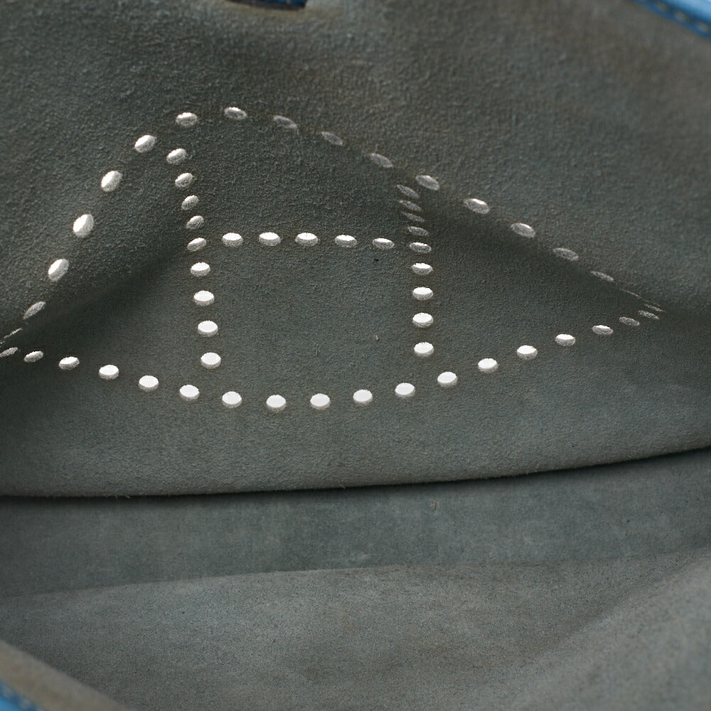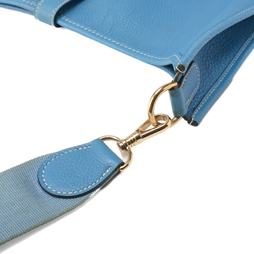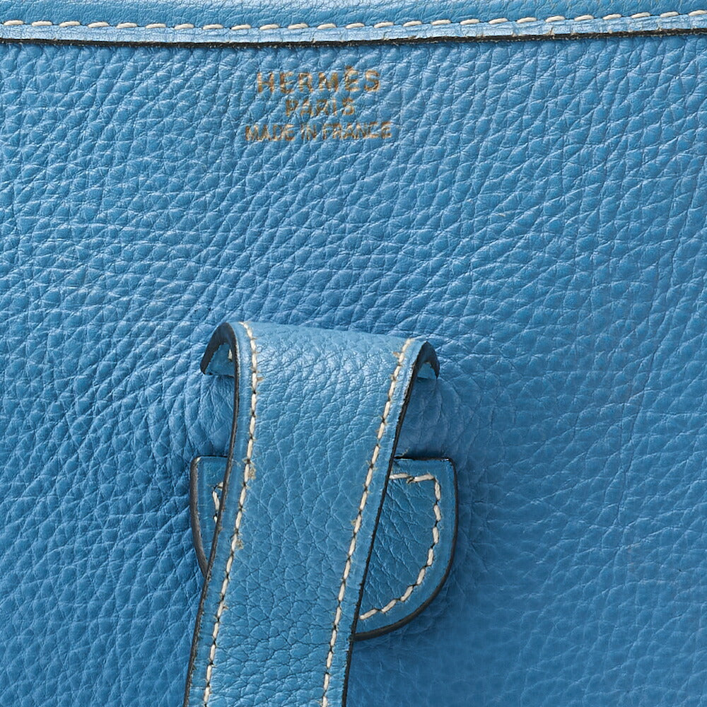 Wir präsentieren die HERMES Hermes Evelyn PM Schultertasche in einem atemberaubenden Blue-Jeans -Ton, ergänzt durch luxuriöse Goldbeschläge. Dieses exquisite Stück ist aus Tryon Clemence Leder gefertigt, das für seine weiche Textur und Strapazierfähigkeit bekannt ist und so Stil und Funktionalität perfekt vereint.
