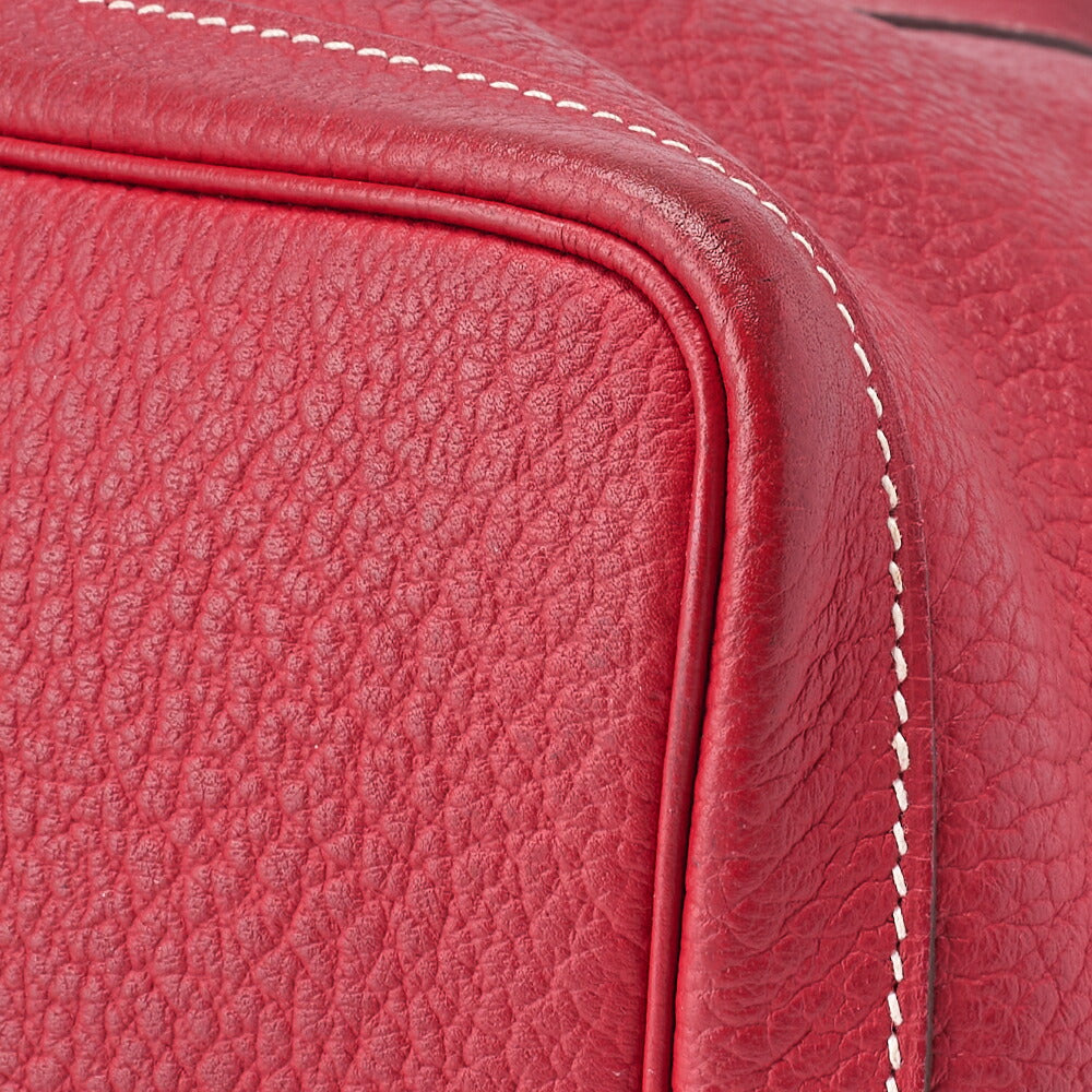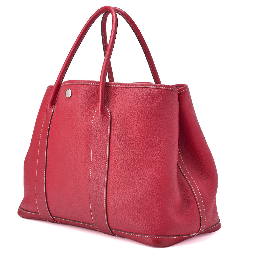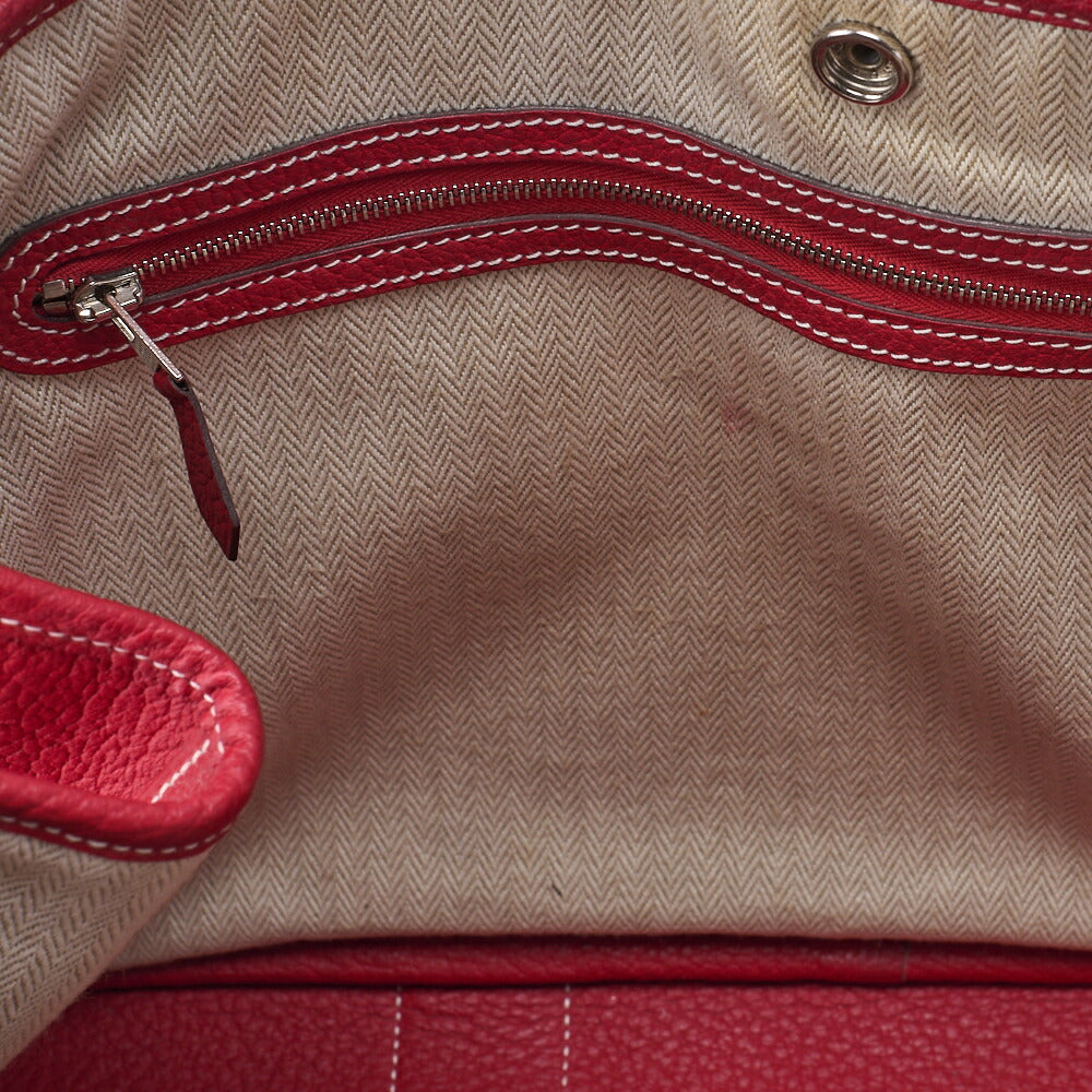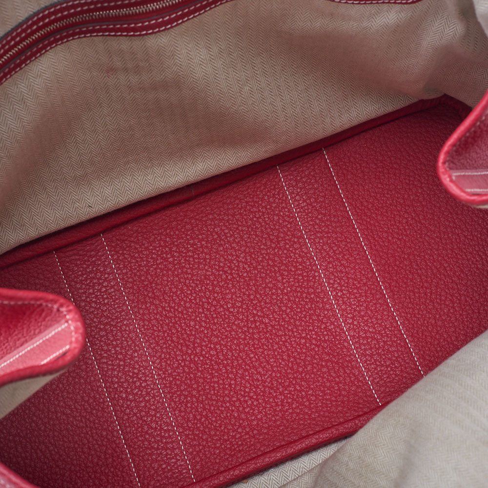 Veredeln Sie Ihren Stil mit der HERMES Hermes Garden Party PM Tote Bag in auffälligem Negonda Rouge mit silbernen Beschlägen. Diese exquisite Damentasche, auch gebraucht, präsentiert die zeitlose Eleganz und die unvergleichliche Handwerkskunst, die für die Marke HERMES steht.