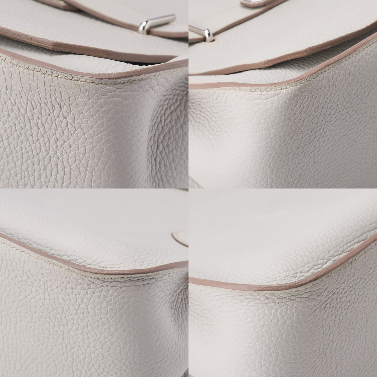 Entdecken Sie die Eleganz und Raffinesse der HERMES Hermes Gypsiere 30 Schultertasche aus luxuriösem Taurillon Clemence Leder, präsentiert in einem atemberaubenden Gris Mouette- Farbton mit exquisiten silbernen Metallbeschlägen. Diese vielseitige Tasche ist perfekt für Damen und Herren und wertet mit ihrem zeitlosen Design jedes Outfit mühelos auf.