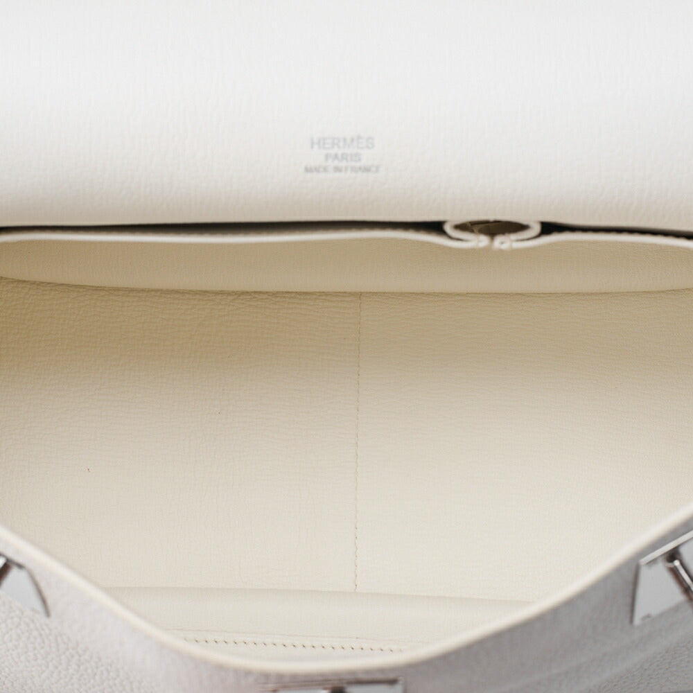 Veredeln Sie Ihren Stil mit der HERMES Gypsiere 34 Schultertasche aus luxuriösem Tryon Clemence Leder in makellosem Weiß mit atemberaubenden silbernen Metallbeschlägen. Dieses exquisite Stück vereint Eleganz und Funktionalität perfekt und ist ein Must-have für jede modebewusste Frau.
