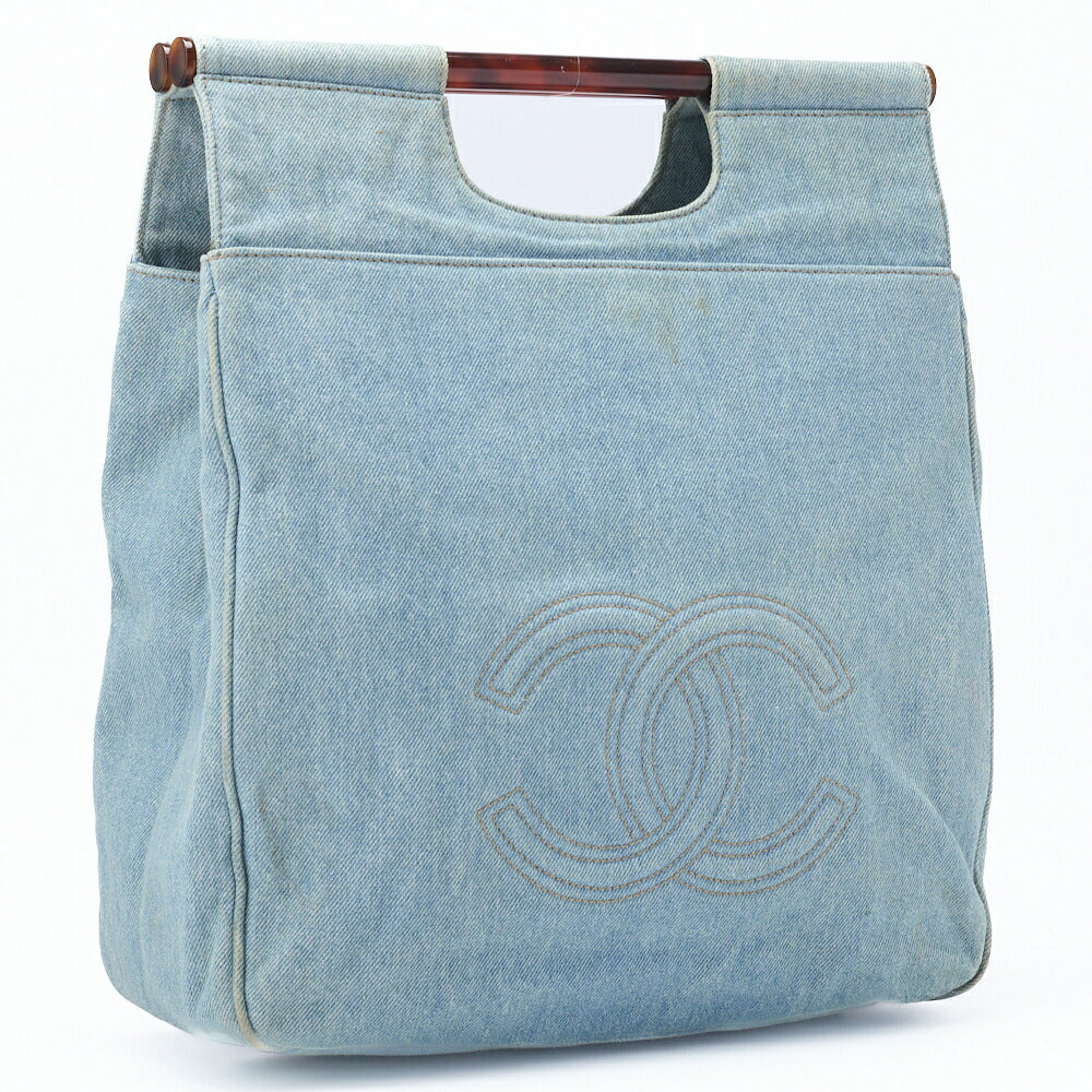 Gebrauchte Handtasche Coco Mark Schildpattmuster Denim Goldfarbene Hardware Gebraucht