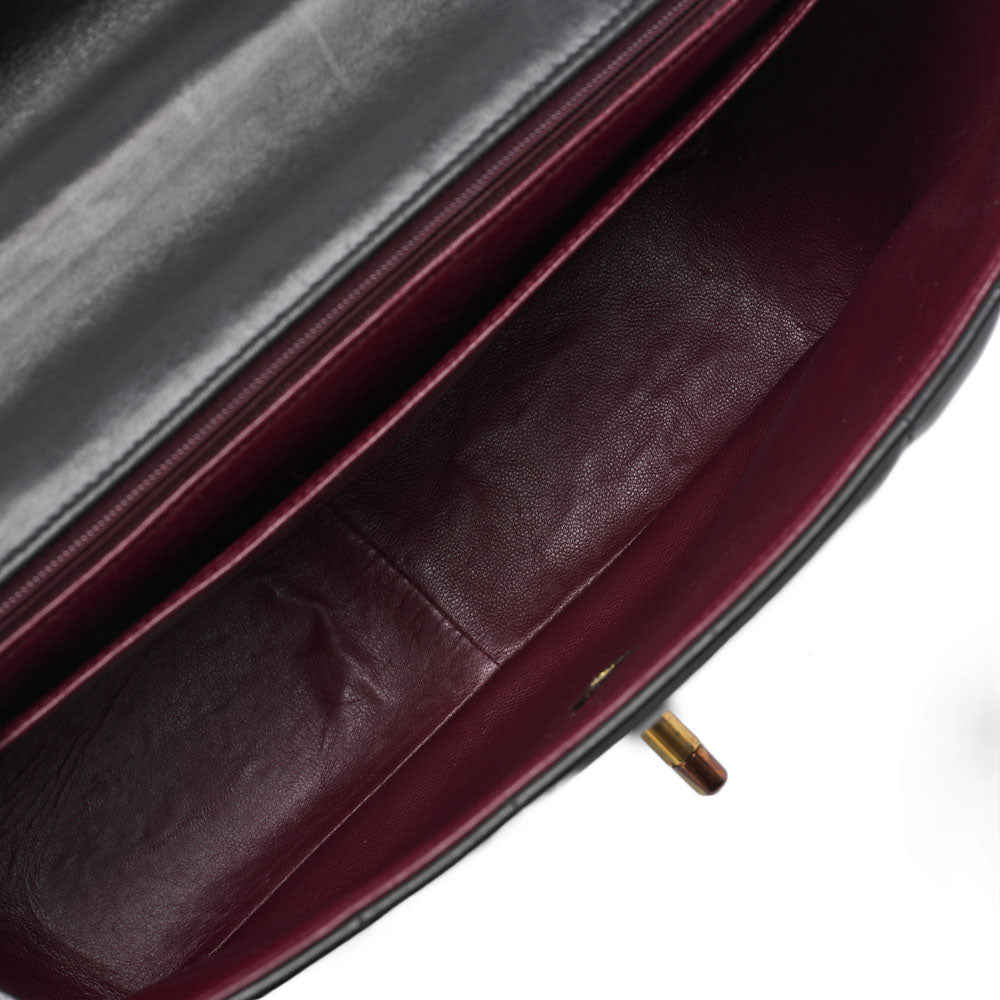 Pre-Owned Schultertasche, Mademoiselle Drehverschluss, Lammleder, Schwarz, Goldfarbene Metallteile, Pre-Owned