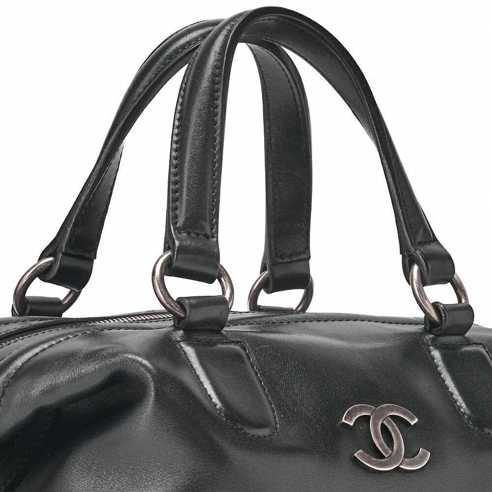 Pre-Owned Handbag Mini Boston Bag Calfskin Matelassé Coco Mark Black Silver-Tone Hardware, Pre-Owned