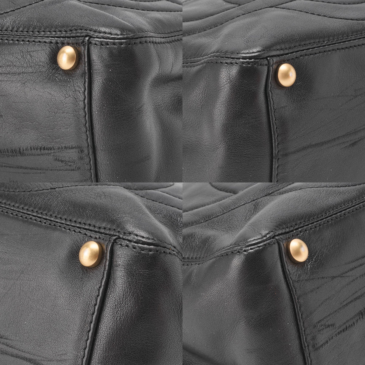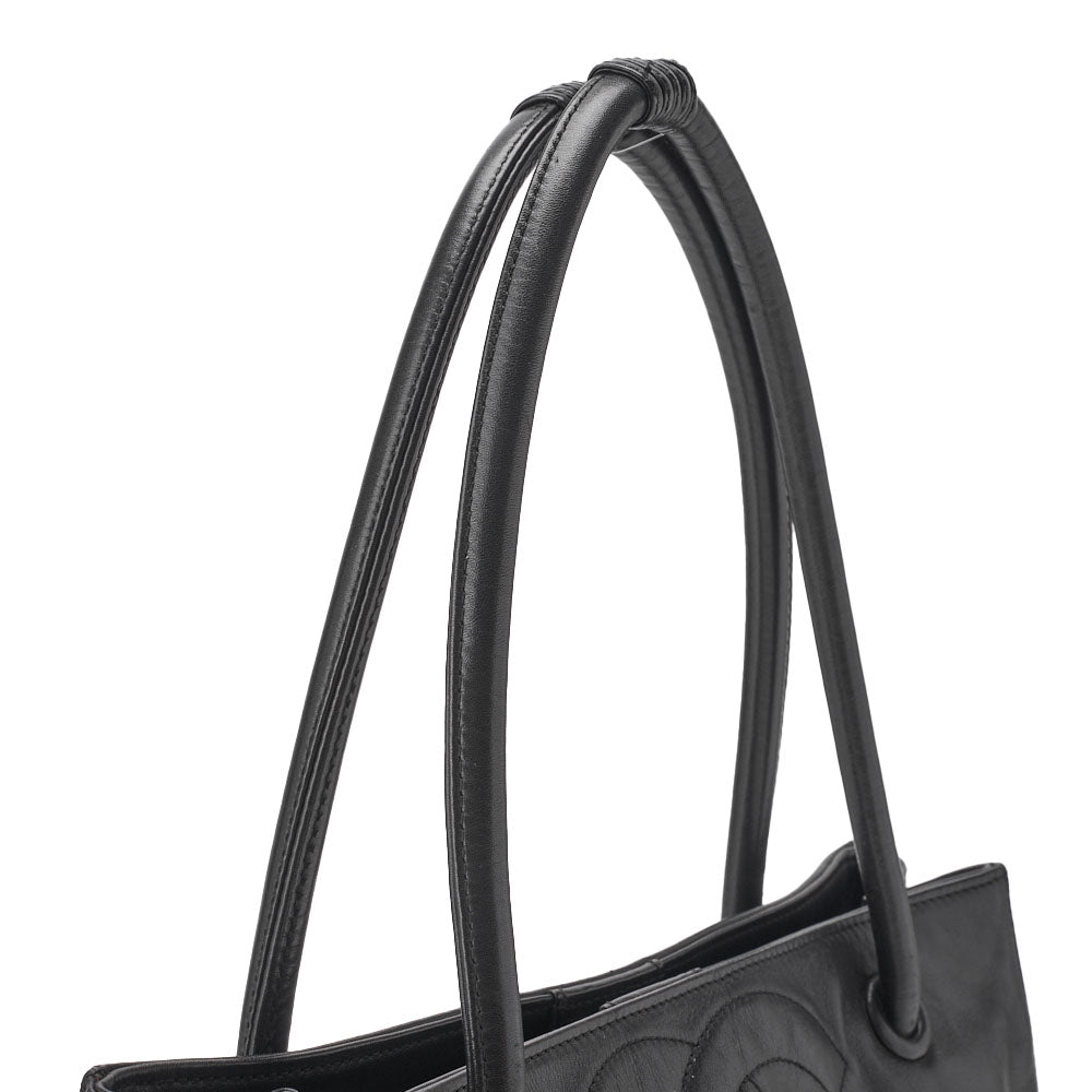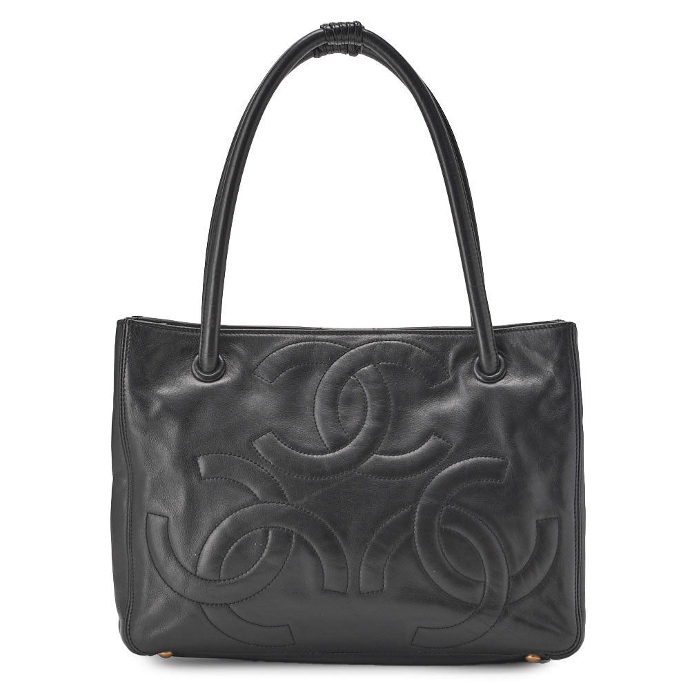Pre-Owned Schultertasche Triple Coco Mark Lammleder Schwarz Goldfarbene Hardware Pre-Owned