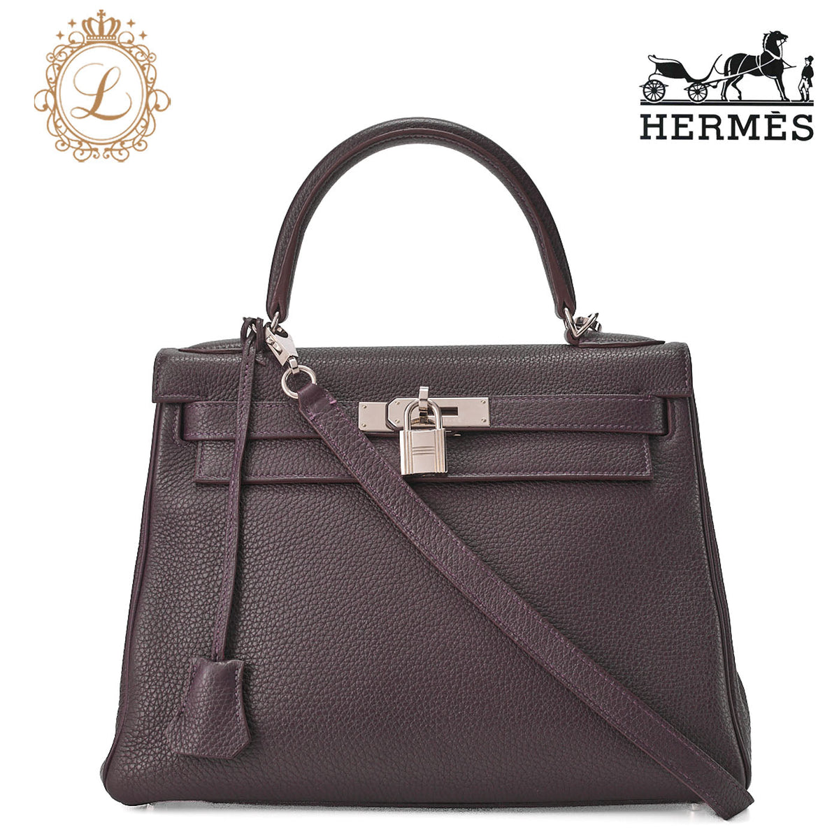 - Brand & model: HERMES Kelly 28 in Togo leather, Rezan color with silver-tone hardware