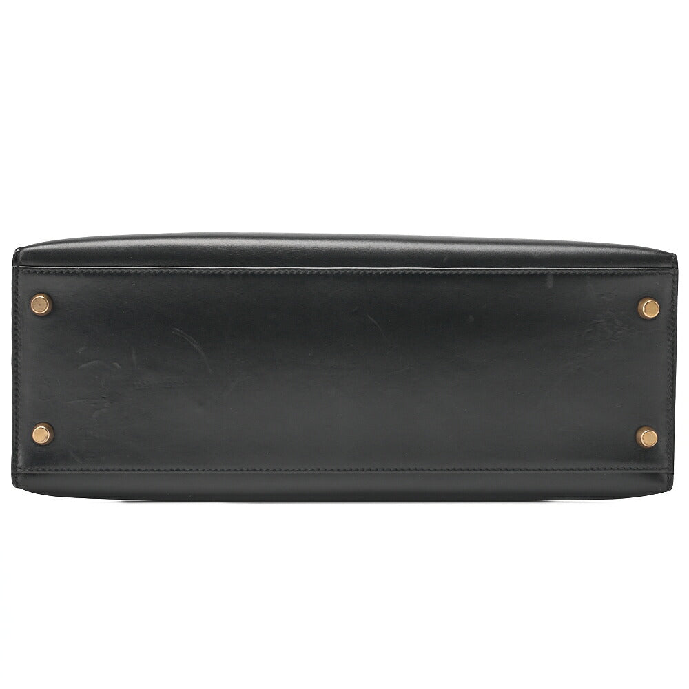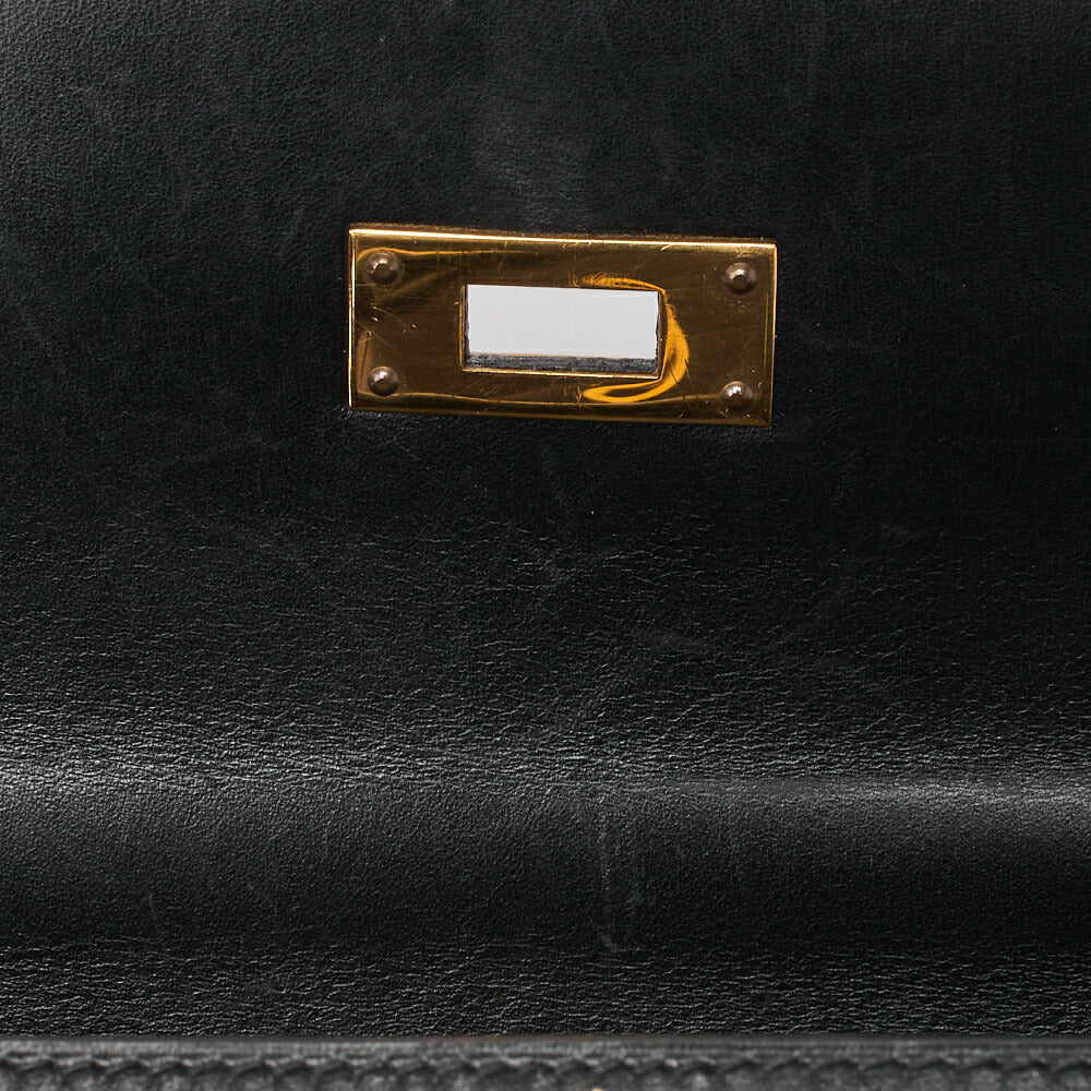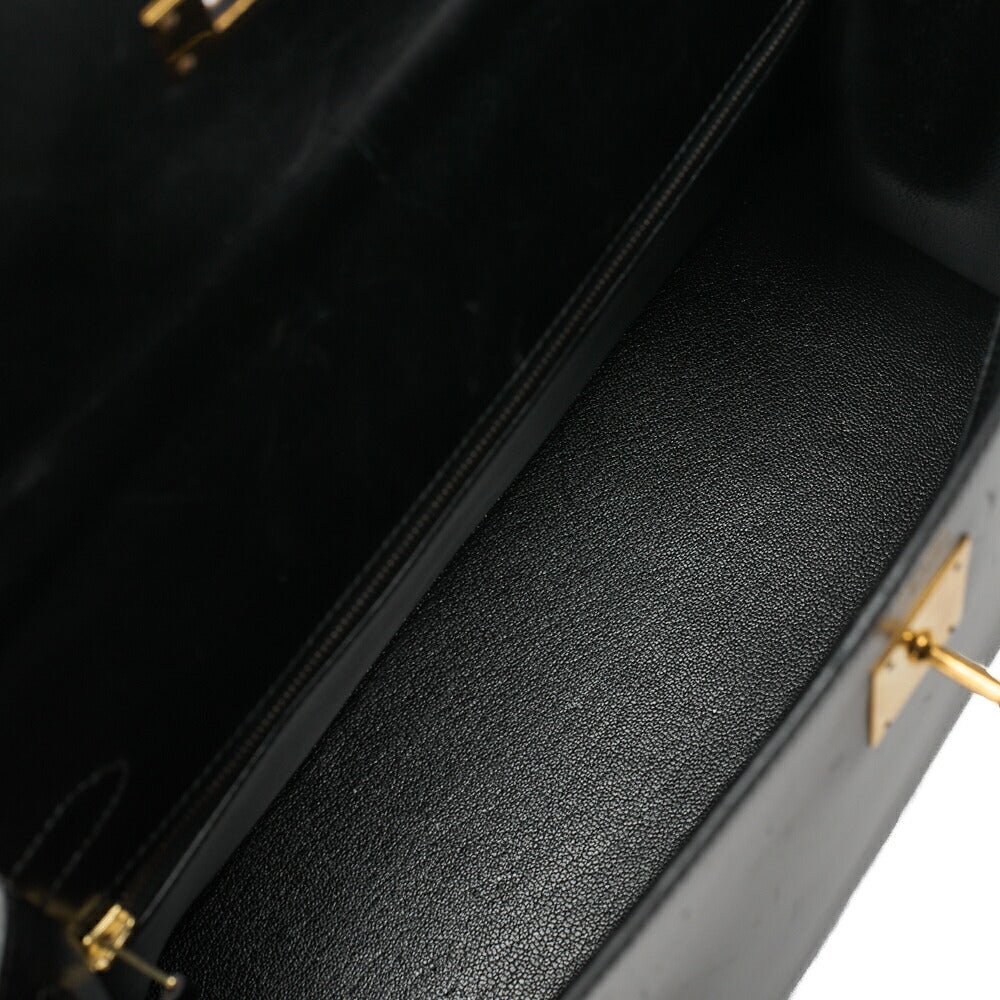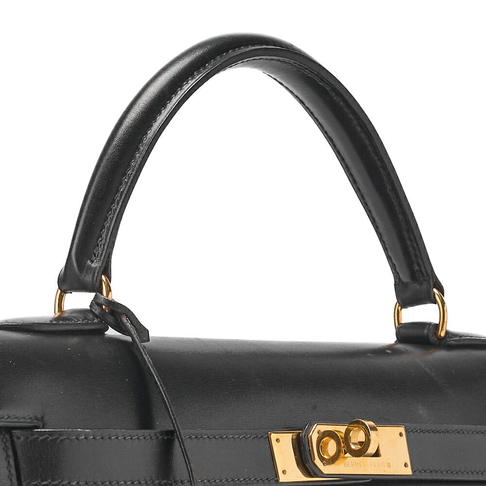 Gebrauchte Kelly 32 Handtasche Box Calf Schwarz Schwarze Außennähte Goldfarbene Hardware, Gebraucht