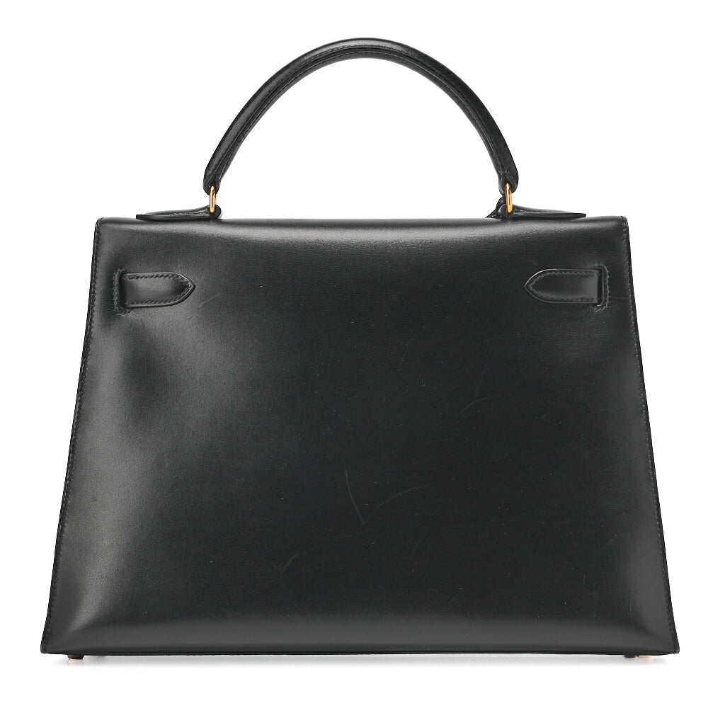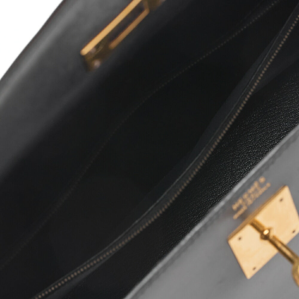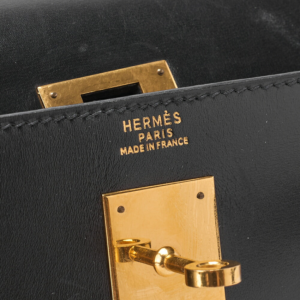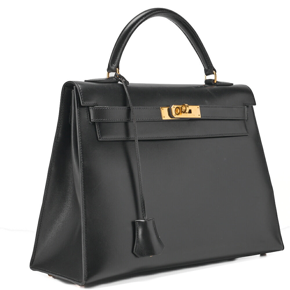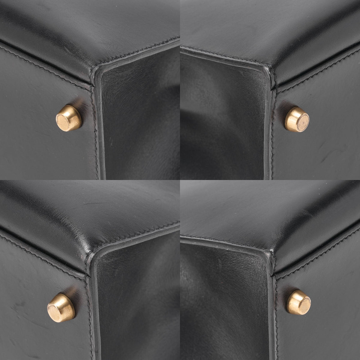 Gebrauchte Kelly 32 Handtasche Box Calf Schwarz Schwarze Außennähte Goldfarbene Hardware, Gebraucht