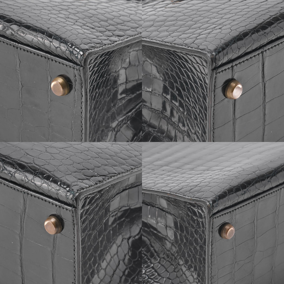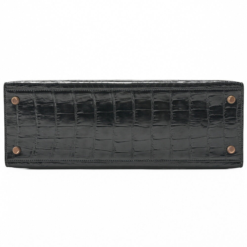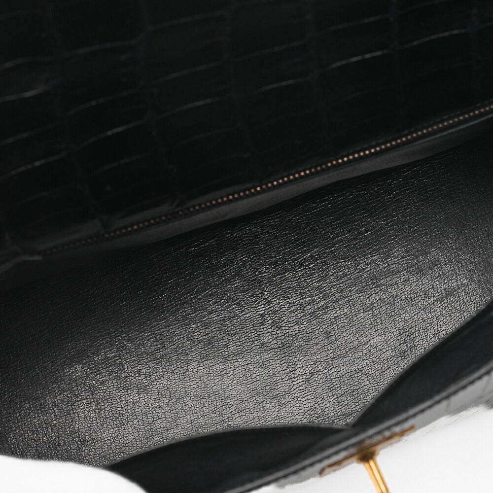 Gebrauchte Kelly 32 Handtasche Krokodil Schwarz Goldfarbene Hardware Gebraucht
