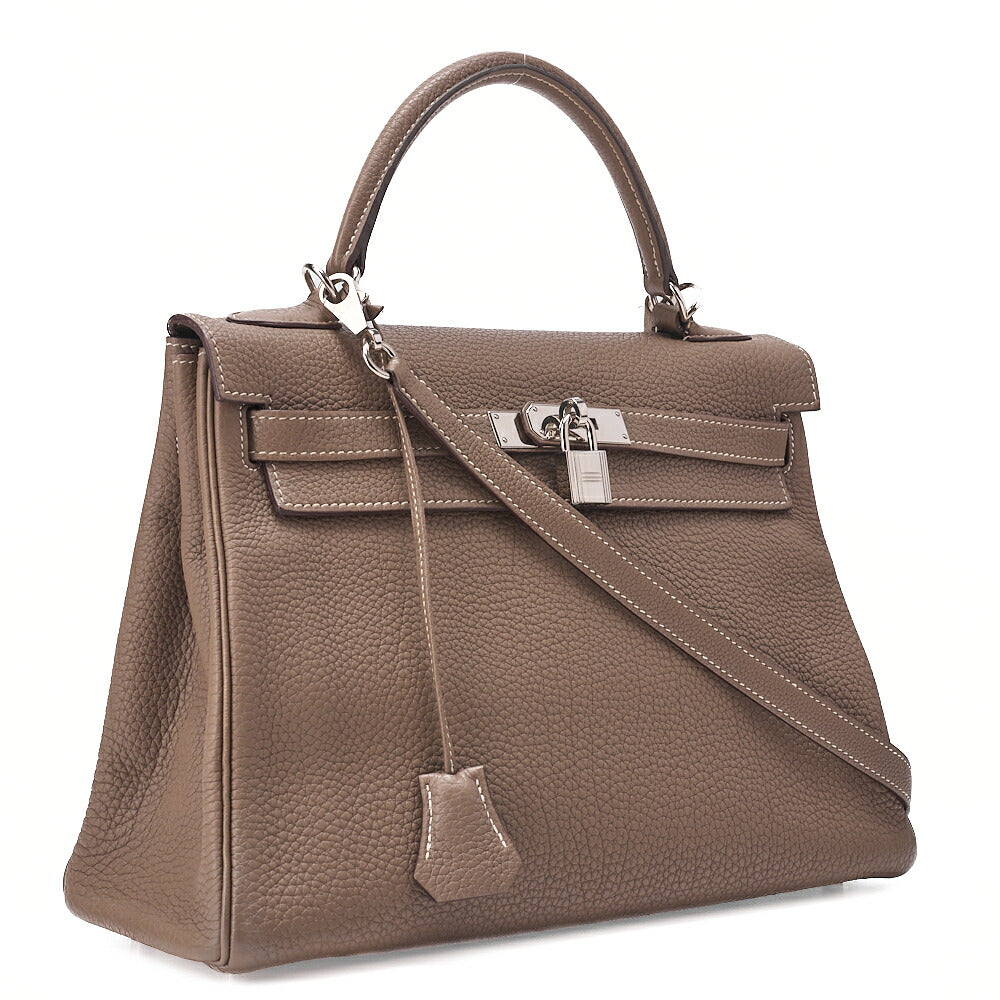 Pre-Owned Kelly 32 Handbag Inseam Tryon Clemence Etoup Silver-Tone Hardware, Pre-Owned