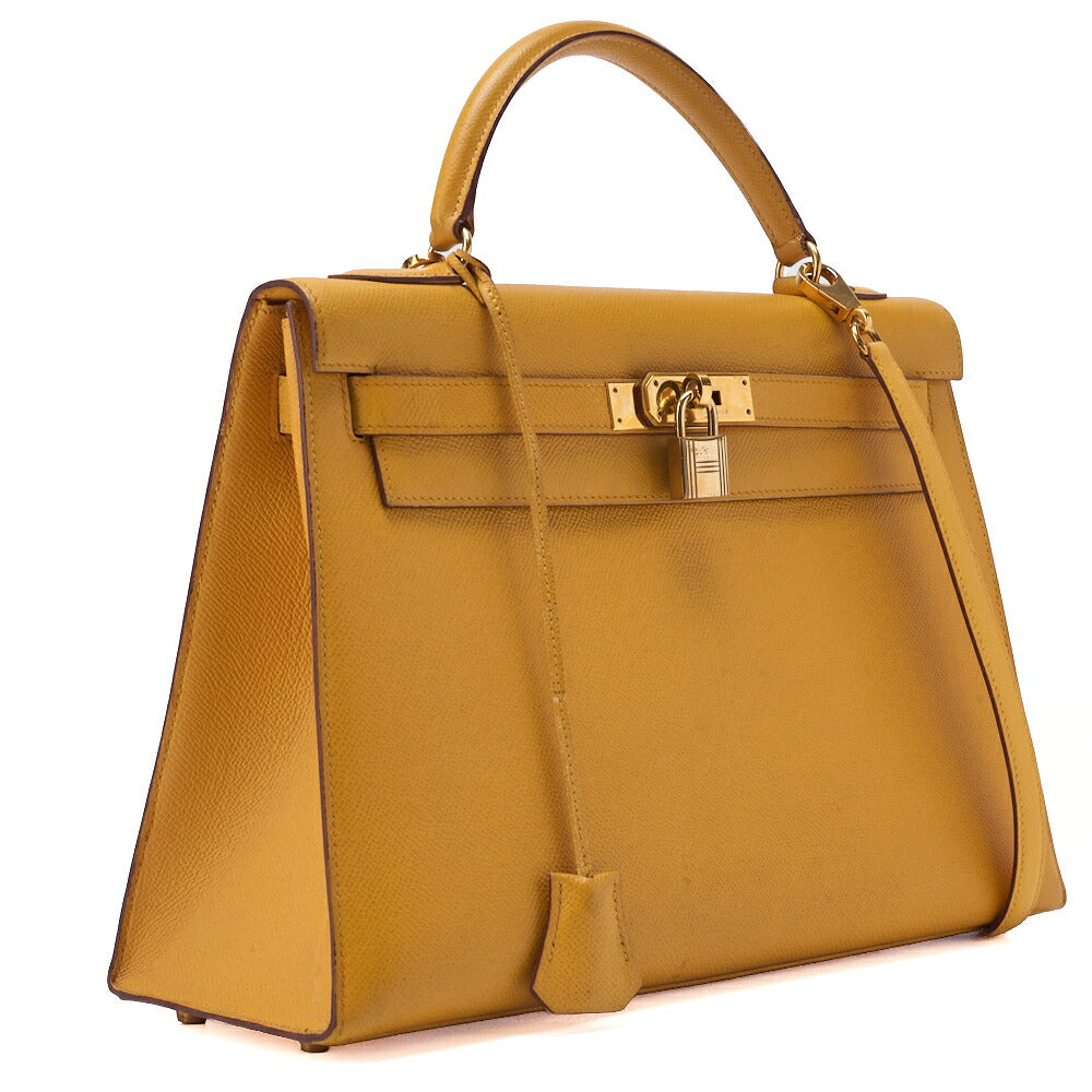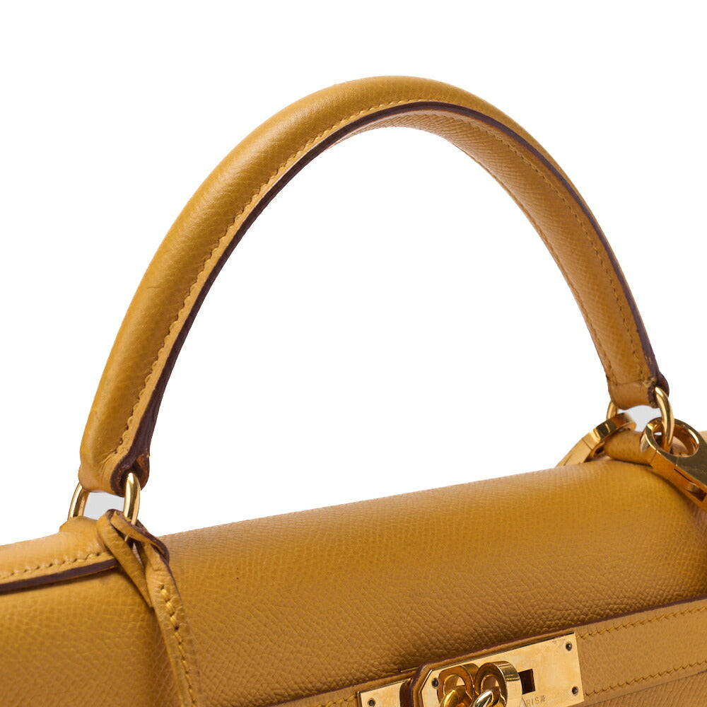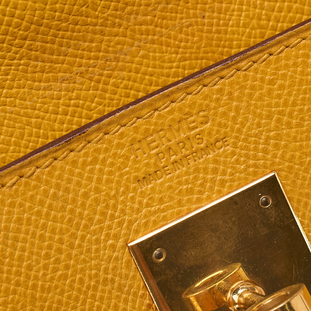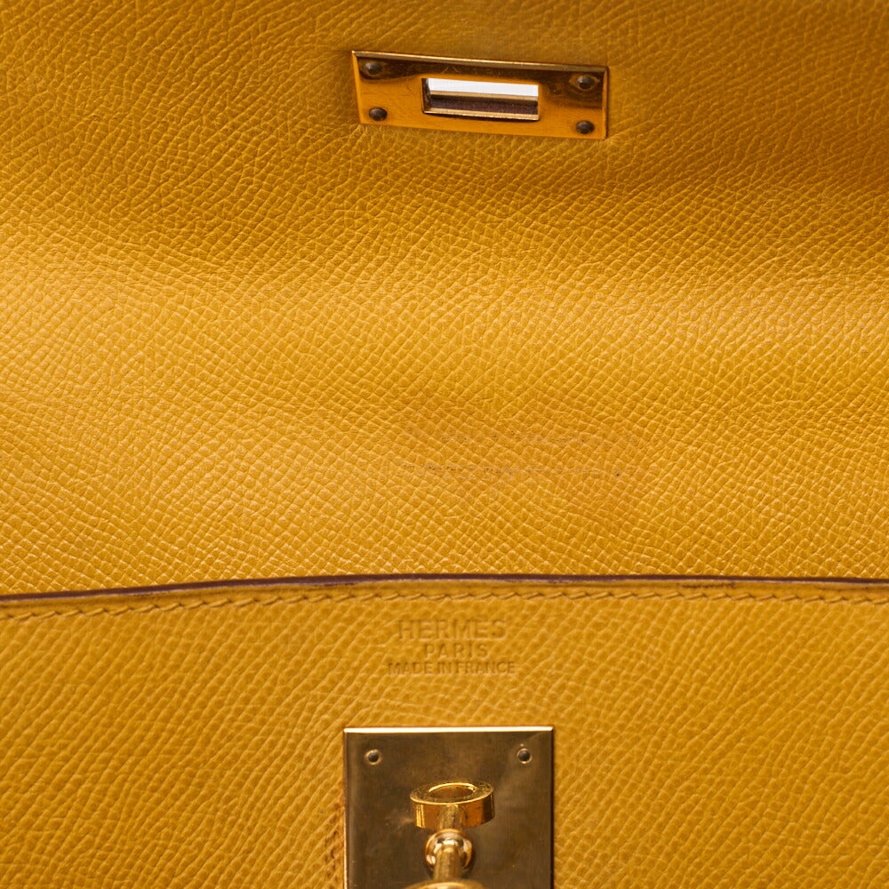 Gebrauchte Kelly 32 Handtasche, Kushbel Gelb, Goldfarbene Hardware, Gebraucht