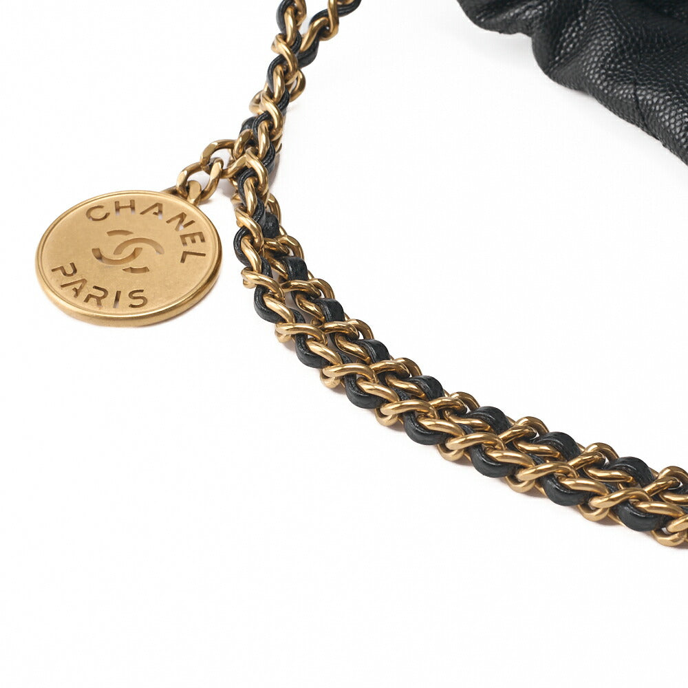 Veredeln Sie Ihren Stil mit der CHANEL Matelasse Chanel 22 Mini Chain Shoulder Caviar Skin Black (Gold Fittings) Damentasche , einem luxuriösen Markenaccessoire, das zeitlose Eleganz mit moderner Raffinesse verbindet. Diese ikonische Schultertasche aus hochwertigem Kaviarleder besticht durch ihre strapazierfähige, strukturierte Oberfläche, die Kratzern und täglicher Abnutzung widersteht und für langanhaltende Schönheit sorgt.