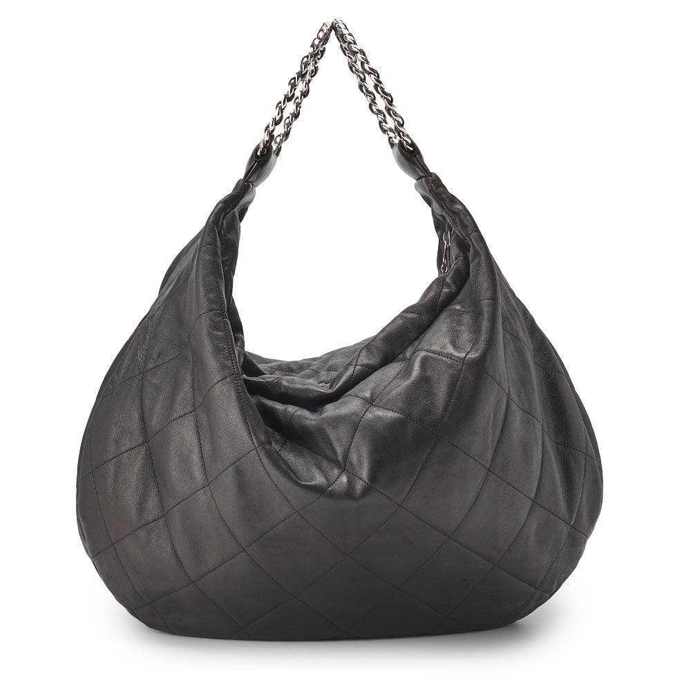 Gebrauchte Handtasche, Matelassé, Kette, Lammleder, Schwarz, silberfarbene Hardware, gebraucht