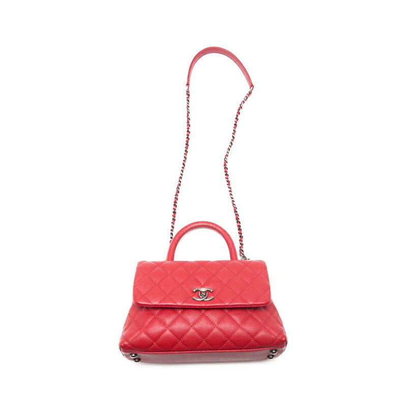 Gebrauchte Handtasche Matelassé Coco Handle 2WAY Caviar Skin Rot Silberfarbene Hardware Gebraucht
