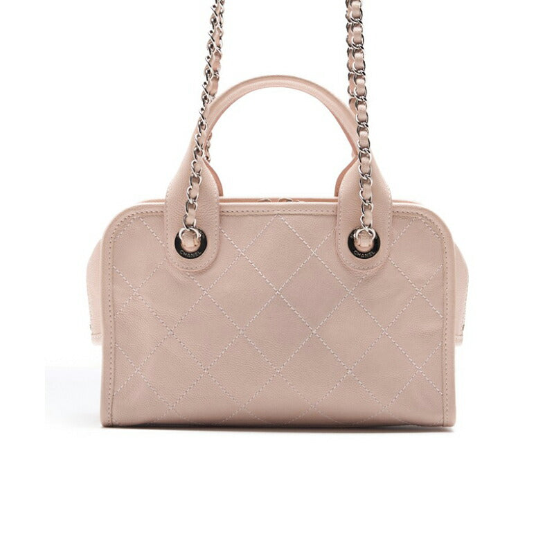 Gebrauchte Handtasche Matelasse Coco Mark 2WAY Caviar Skin Pink Silberfarbene Hardware Gebraucht