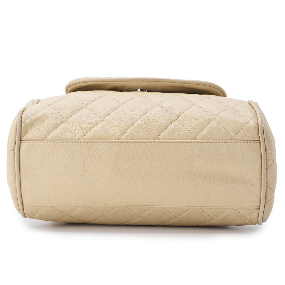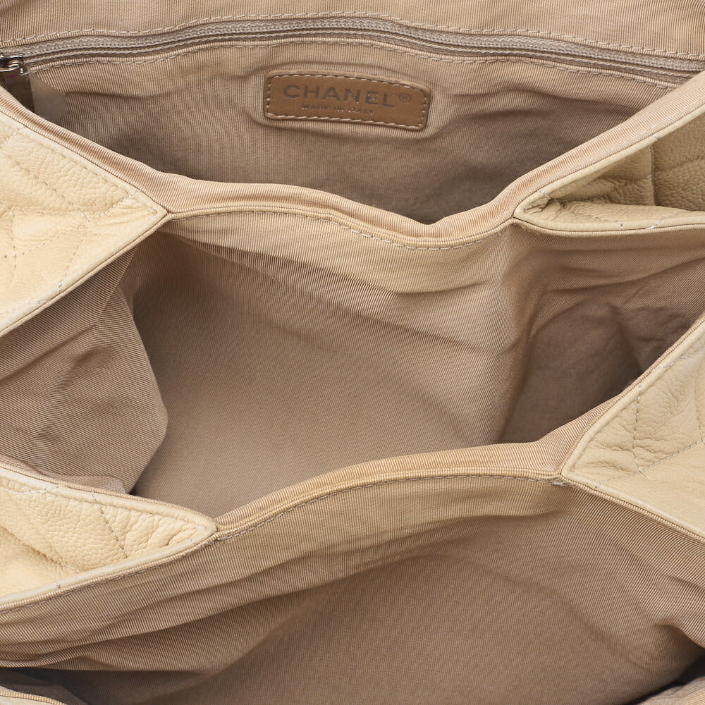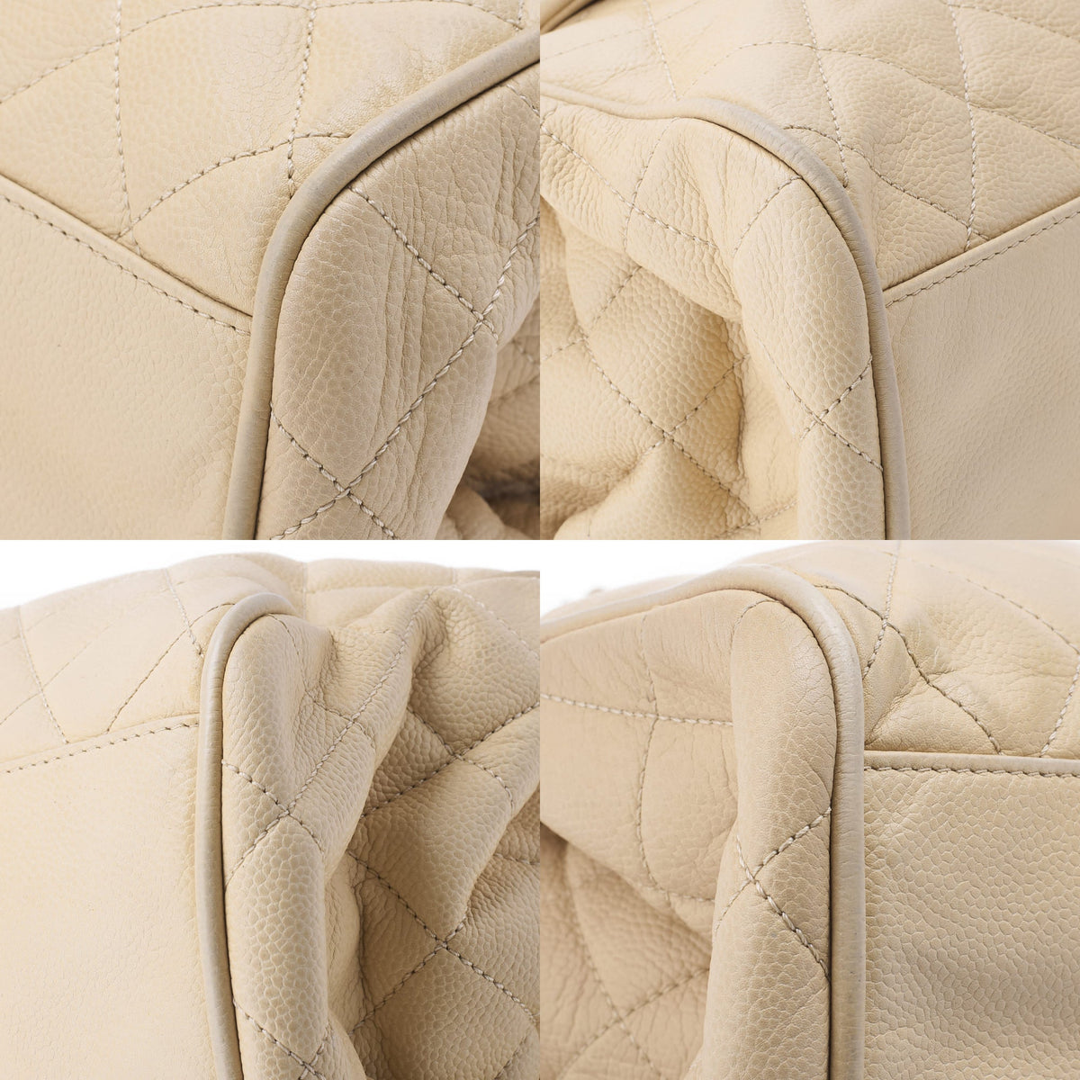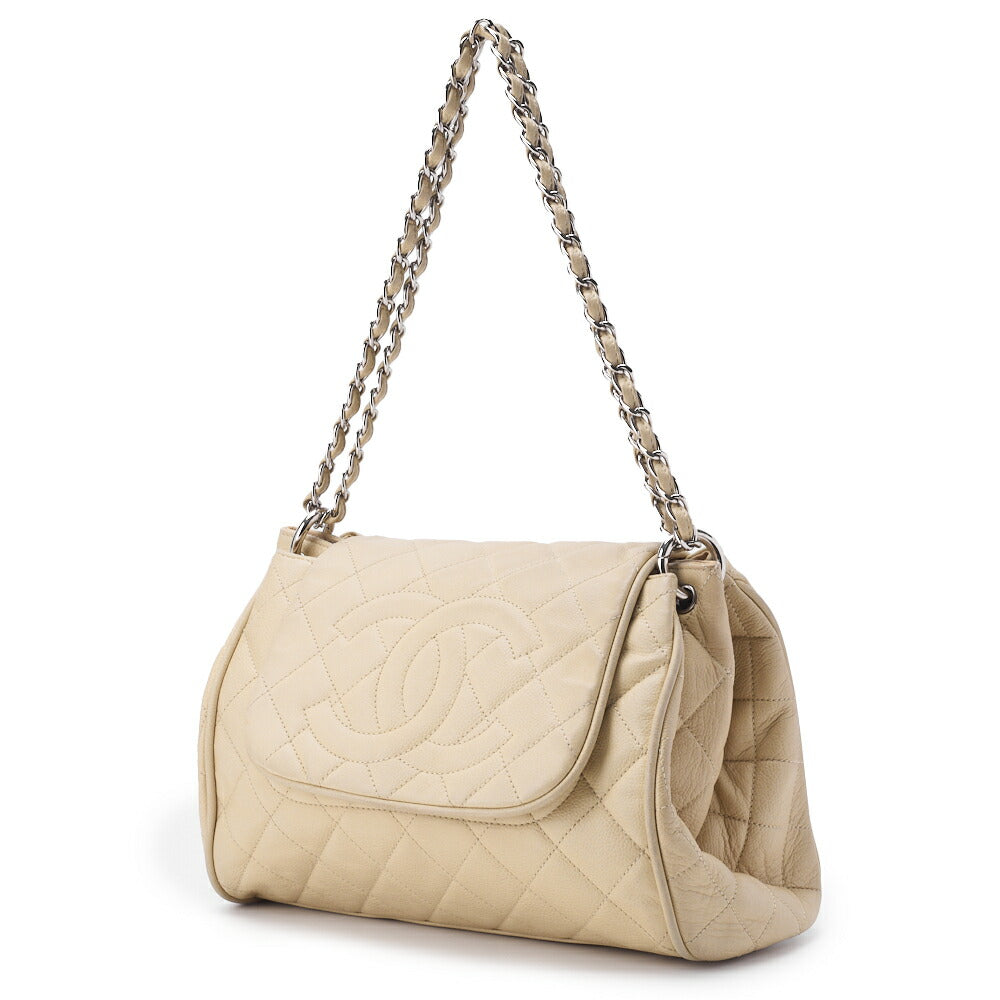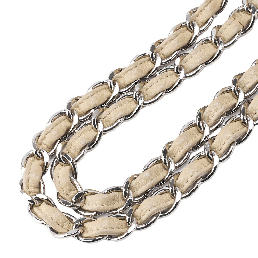 Gebrauchte Umhängetasche, Matelassé, Schulterkette, Kaviarhaut, Elfenbein, silberfarbene Metallteile, gebraucht