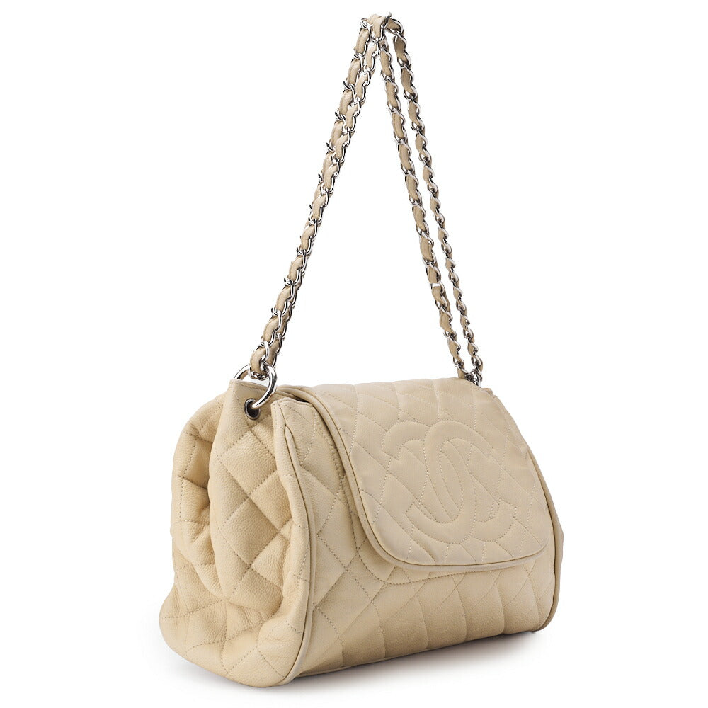 Veredeln Sie Ihren Stil mit der exquisiten CHANEL Matelassé Coco Mark Chain Schultertasche aus luxuriösem Caviar Skin in atemberaubendem Elfenbeinton , verziert mit eleganten Silberbeschlägen . Diese elegante Damentasche ist nicht nur ein Accessoire, sondern ein Statement-Piece, das zeitlose Mode verkörpert.
