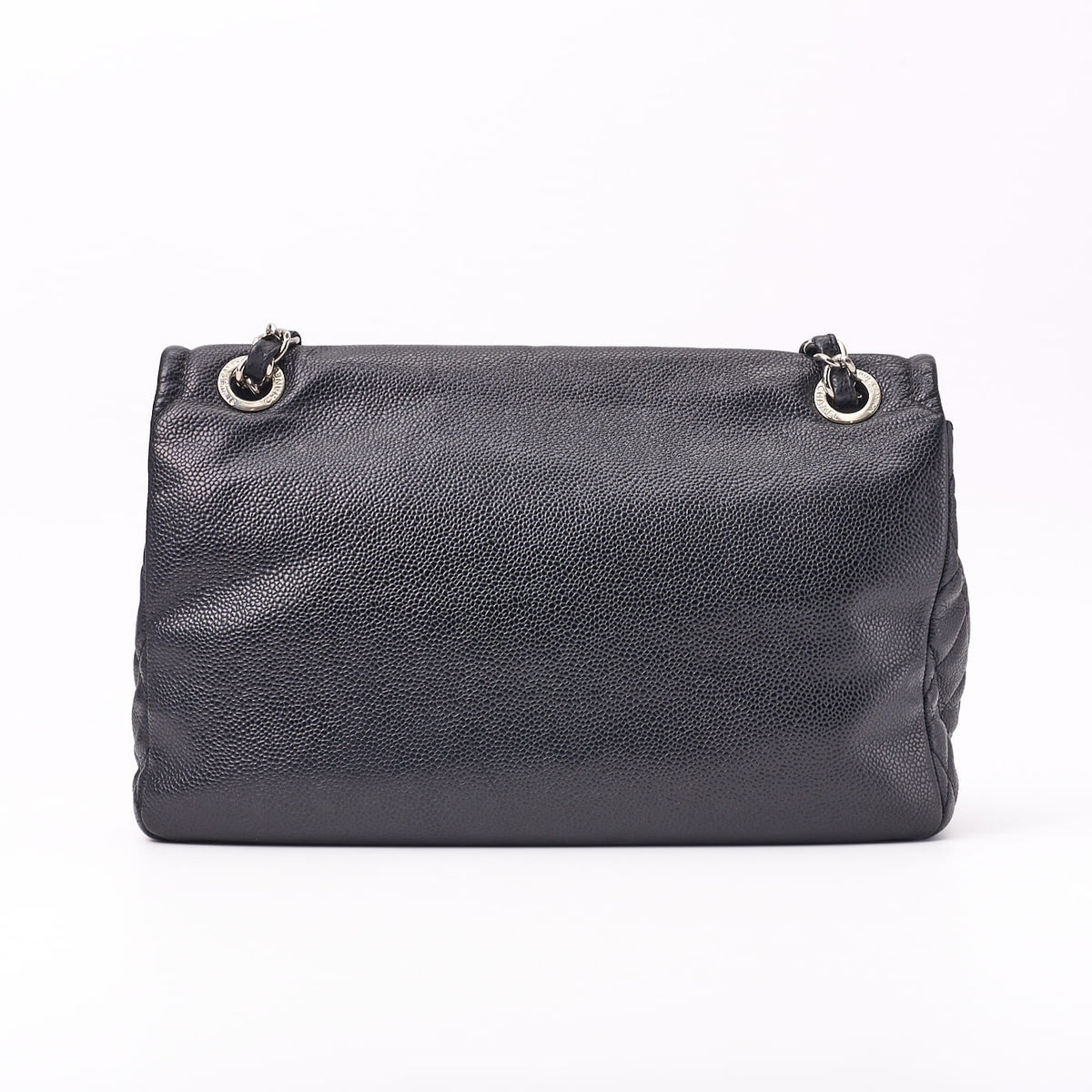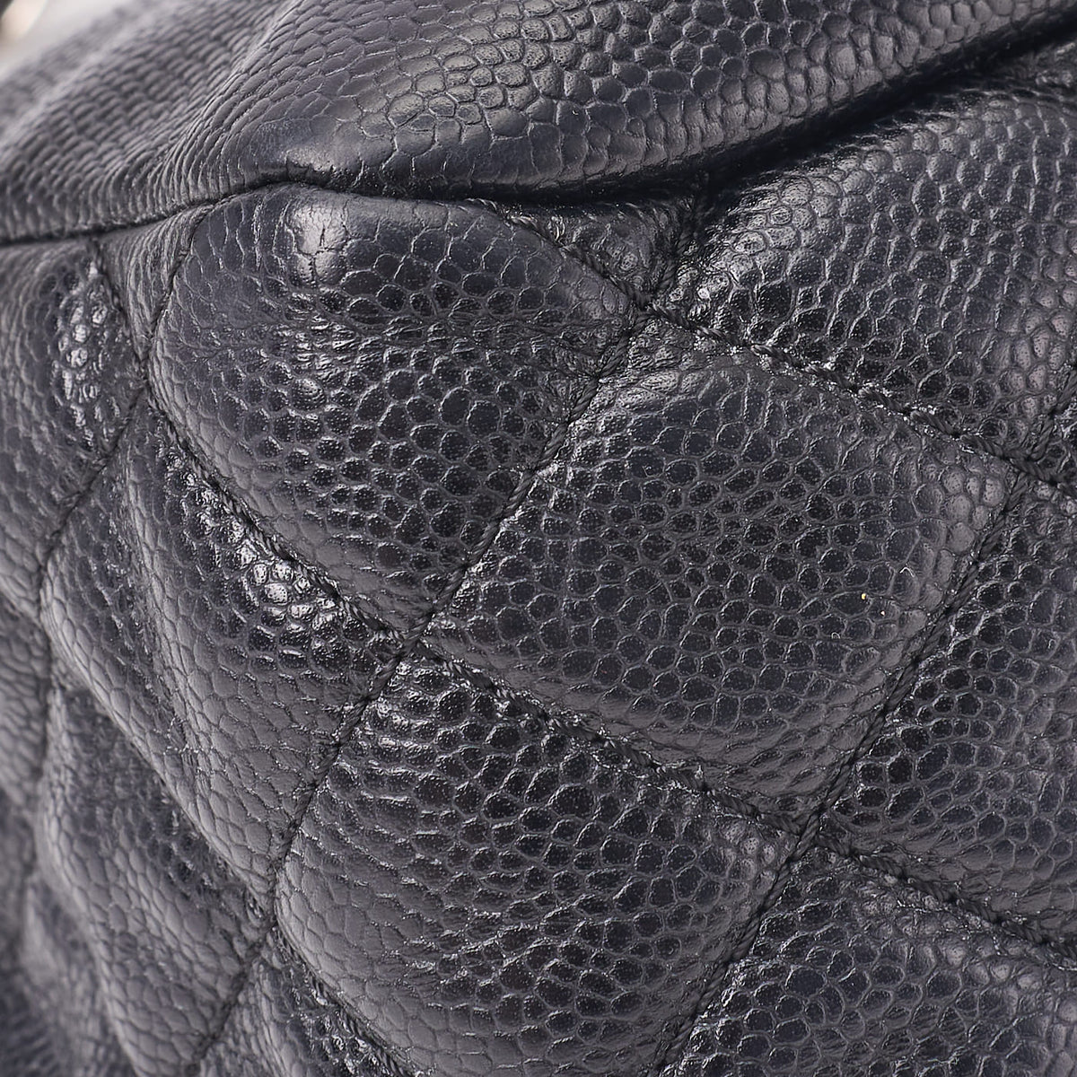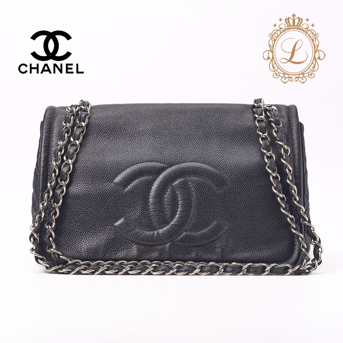 Gebrauchte Tragetasche Matelassé Coco Mark Kette Schulter Weiche Kaviarhaut Schwarz Silberfarbene Hardware Gebraucht