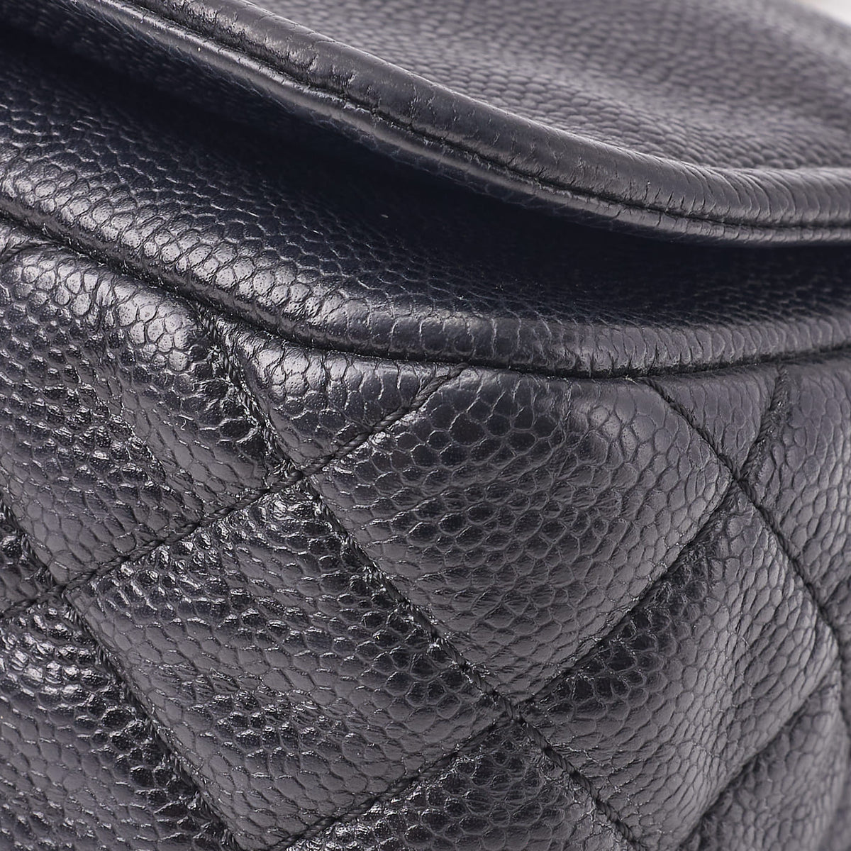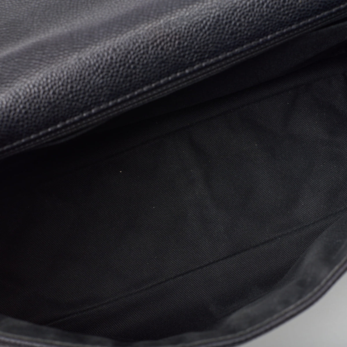 Diese Tasche aus luxuriösem, weichem Kaviarleder besticht durch ihren atemberaubenden Schwarzton, der durch elegante silberne Beschläge abgerundet wird. Mit ihren Abmessungen von ca. 30 cm (B x H x T) x 20 cm (H x T) hat sie die perfekte Größe für Ihre täglichen Essentials. Der verstellbare Schultergurt lässt sich von 72 cm bis 125 cm verlängern und bietet so vielseitige Styling-Optionen.