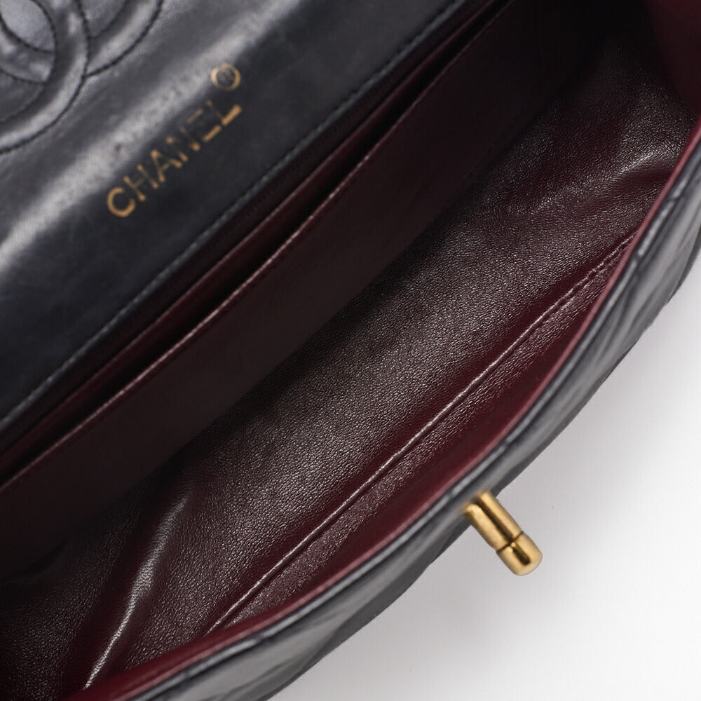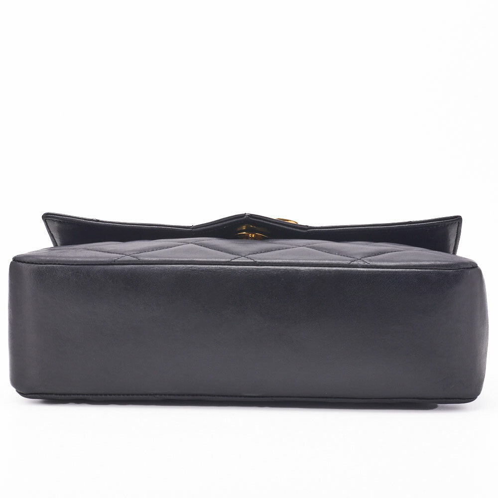 Gebrauchte Umhängetasche, Matelasse Deca Coco, V-Klappe, Lammleder, Schwarz, Goldfarbene Metallteile, Gebraucht