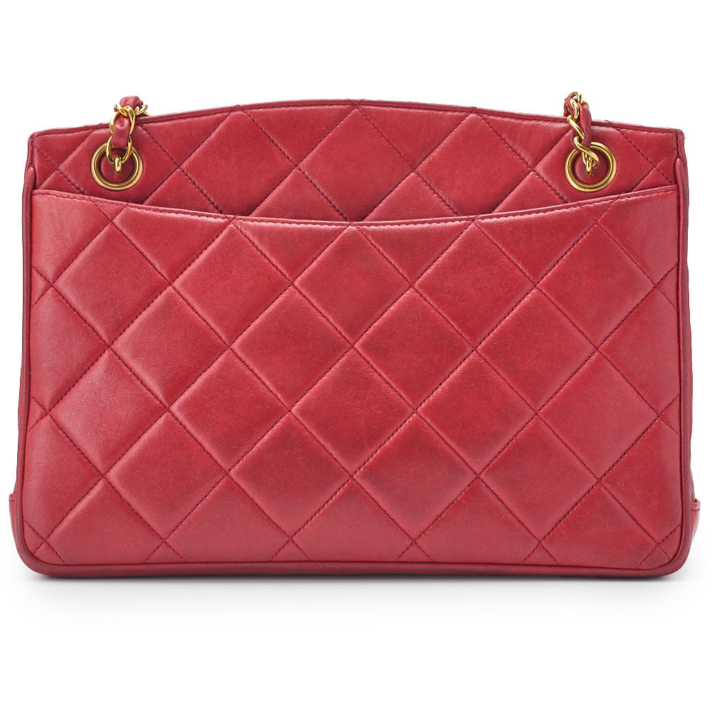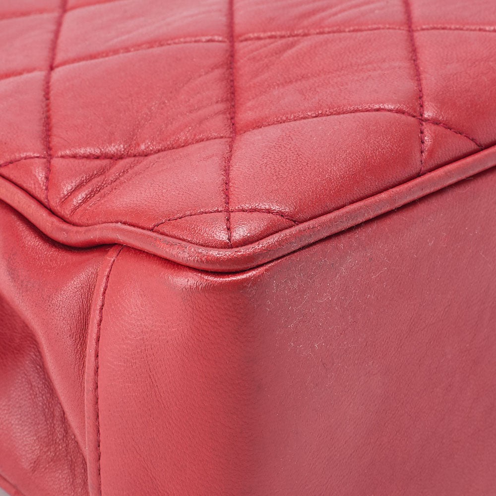 Pre-Owned Schultertasche Matelasse Deca Coco Drehverschluss Lammleder Rot Goldfarbene Hardware Pre-Owned