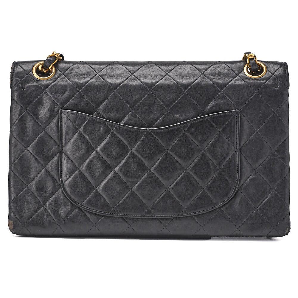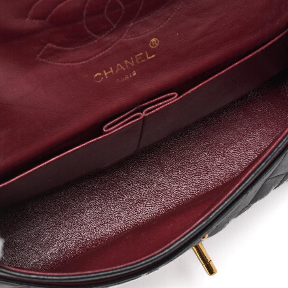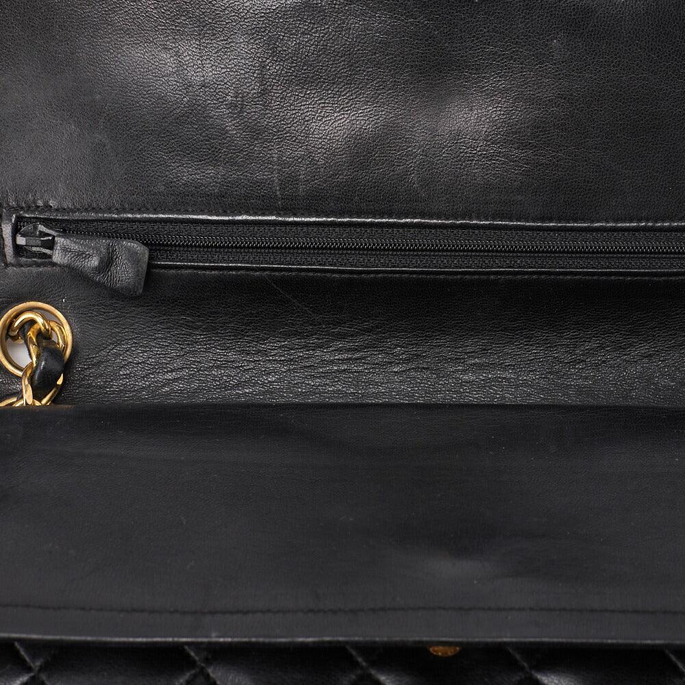 Pre-Owned Schultertasche, Matelassé Doppelklappe, Lammleder, Schwarz, Goldfarbene Hardware, Pre-Owned