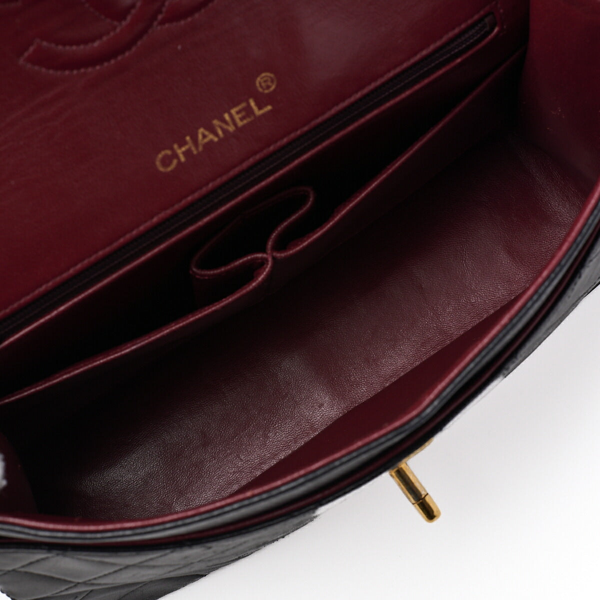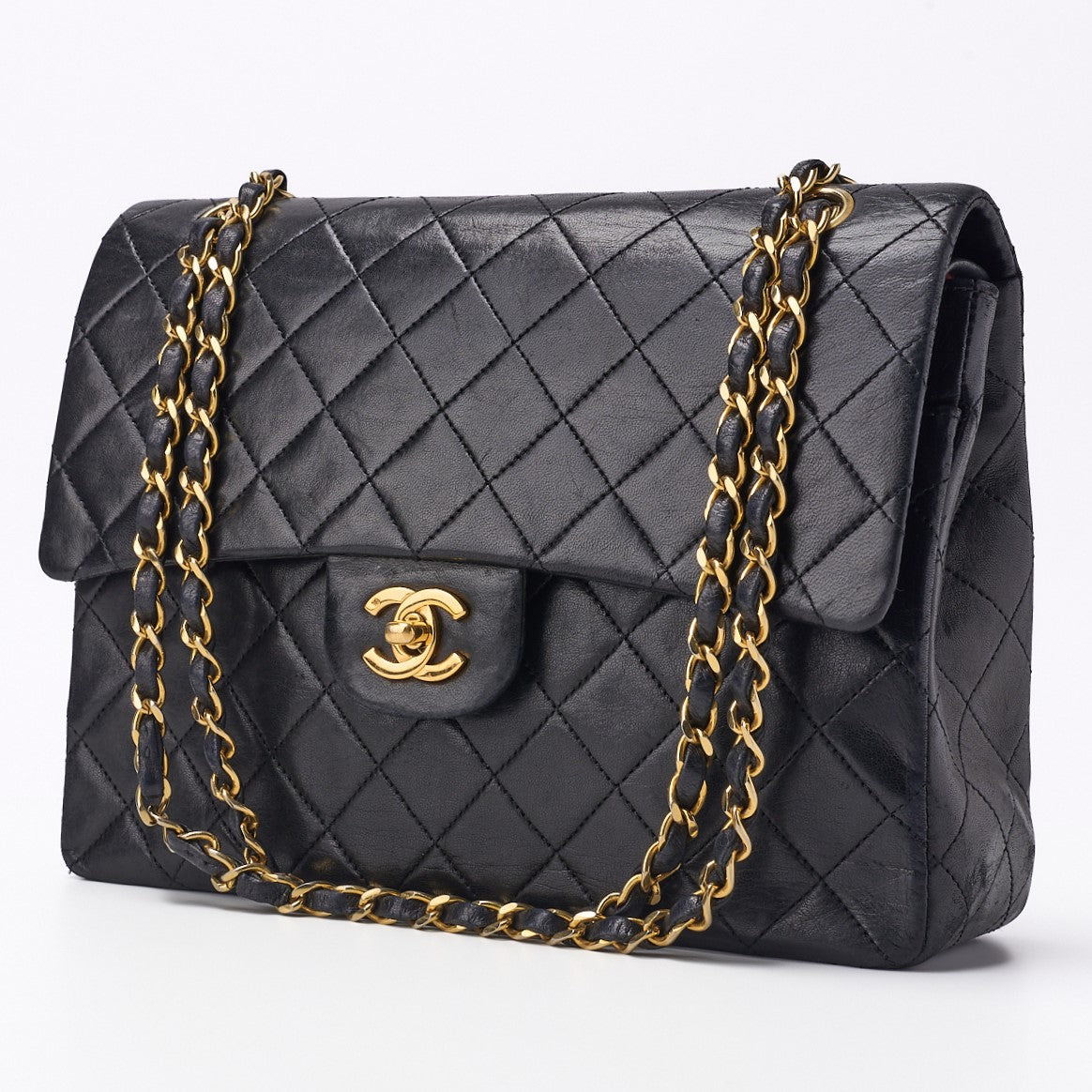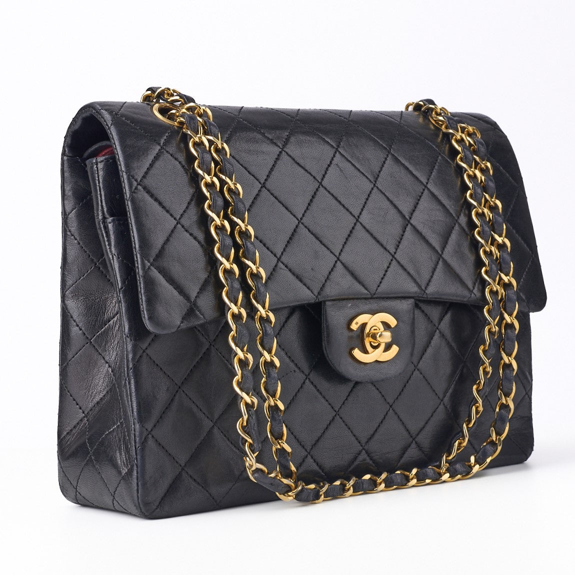 Pre-Owned Schultertasche, Matelassé Doppelklappe, Lammleder, Schwarz, Goldfarbene Hardware, Pre-Owned