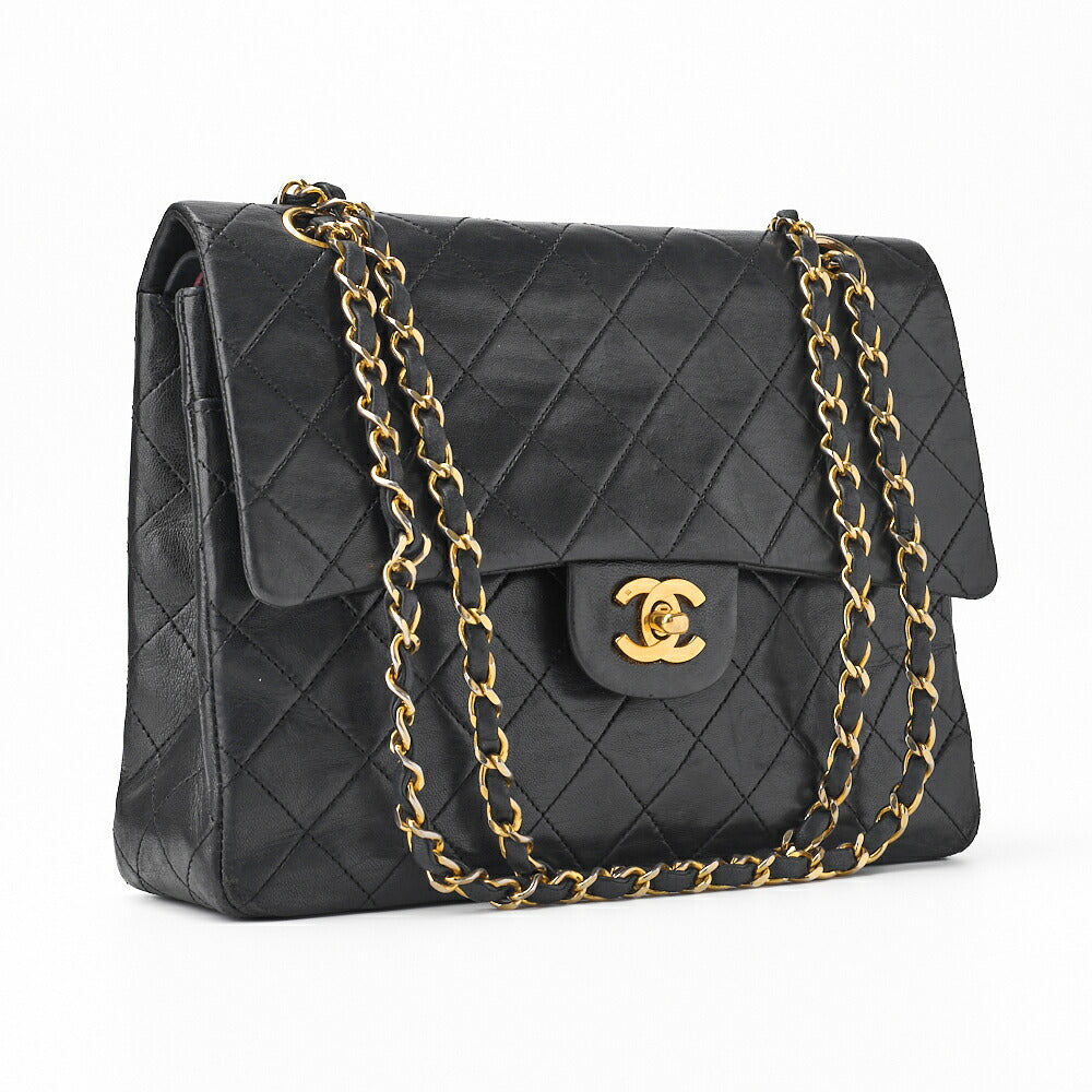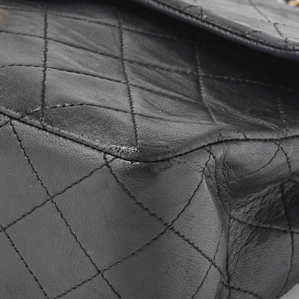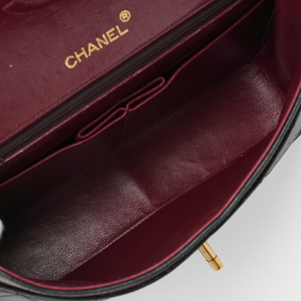 Pre-Owned Schultertasche, Matelassé Doppelklappe, Lammleder, Schwarz, Goldfarbene Hardware, Pre-Owned