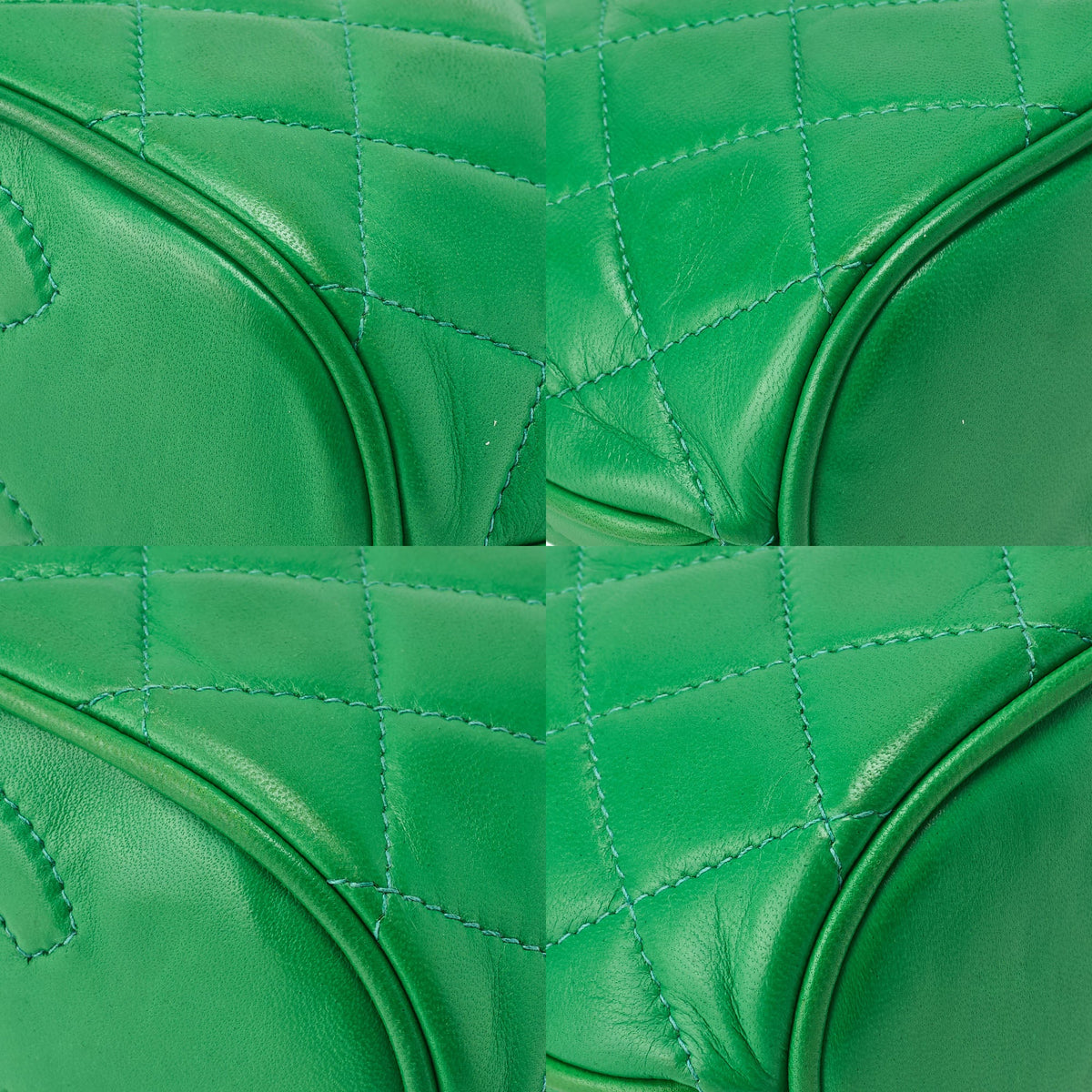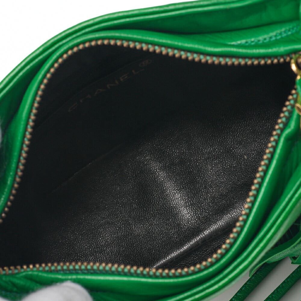 Veredeln Sie Ihren Stil mit der CHANEL Glynn Mini-Schultertasche aus Lammleder mit Matelassé-Fransen (Goldbeschläge) , einem luxuriösen und zeitlosen Accessoire für die moderne Frau, die Wert auf hochwertige Mode legt. Diese exquisite Schultertasche aus geschmeidigem grünem Lammleder besticht durch die ikonische Matelassé-Steppung und elegante Fransendetails und bietet eine einzigartige Mischung aus klassischem und modernem Design.
