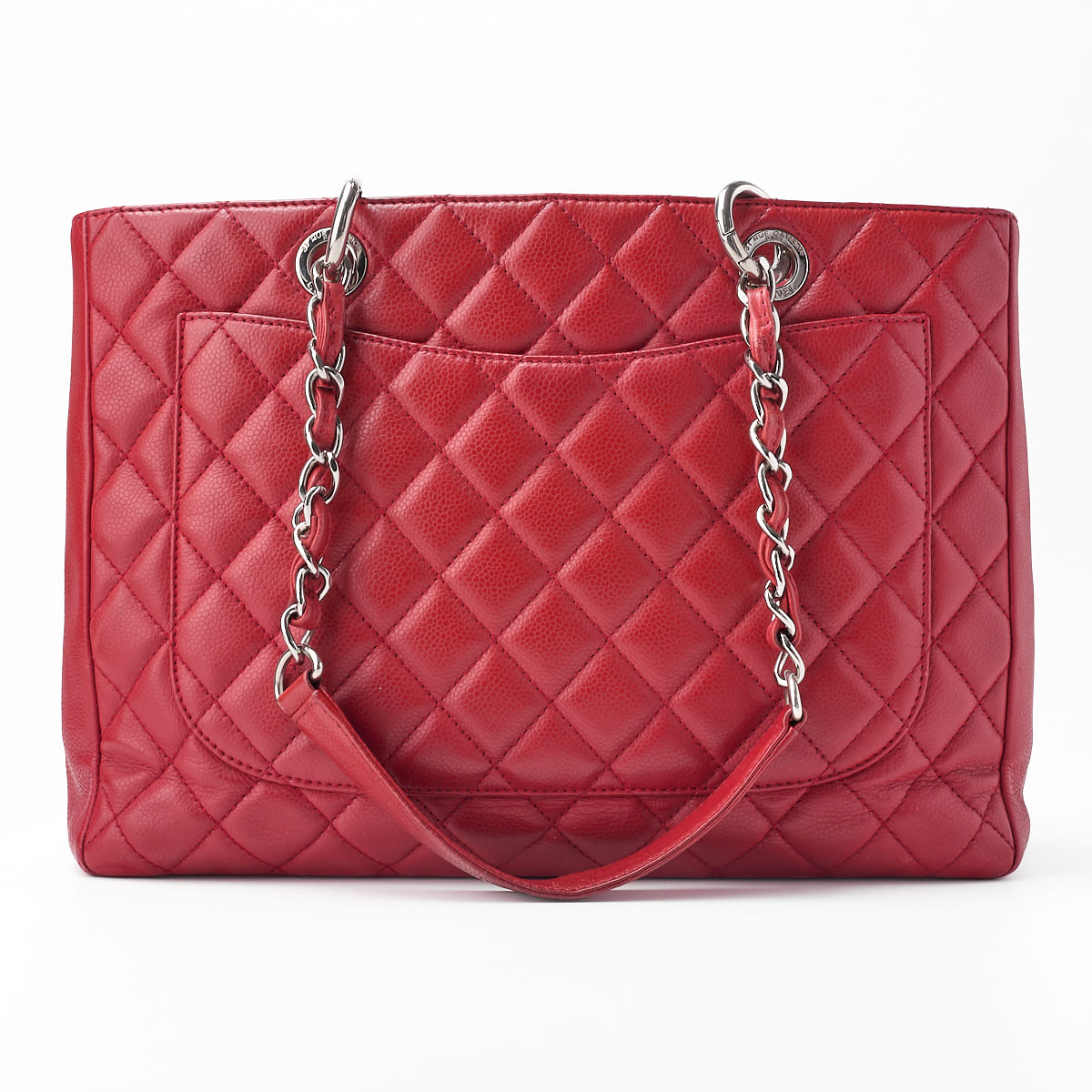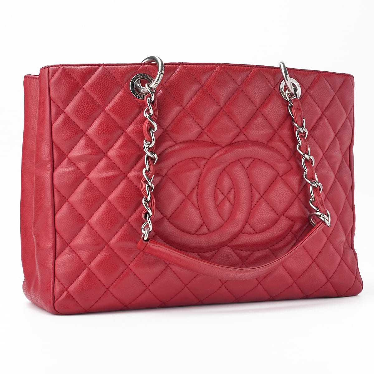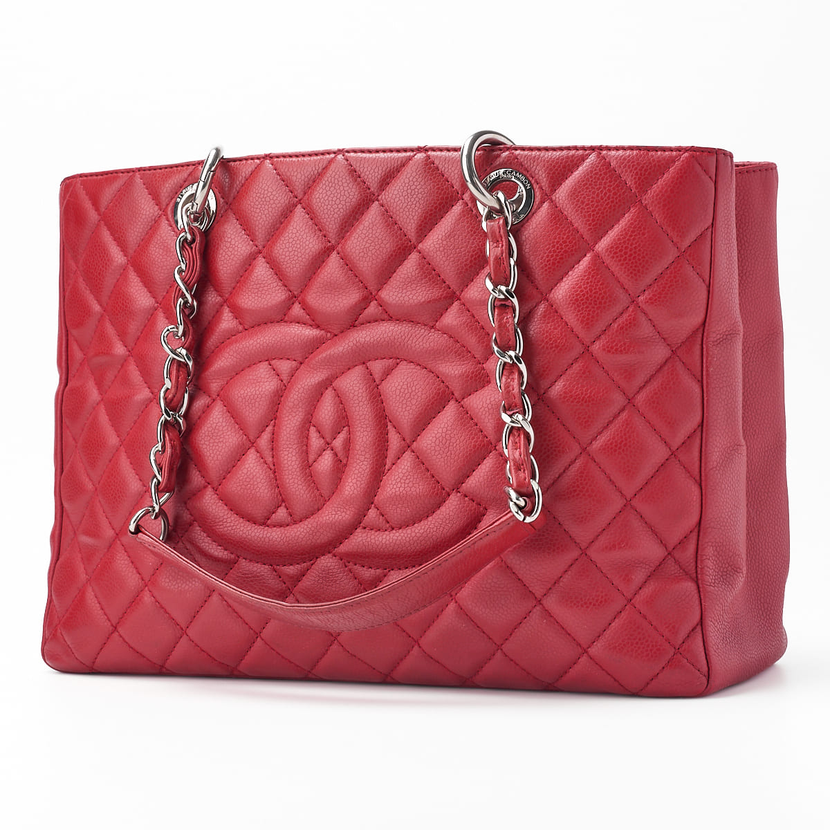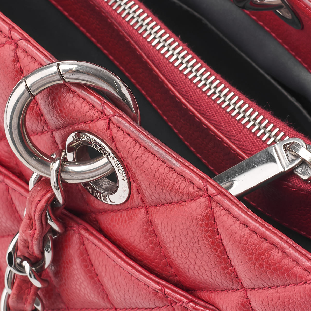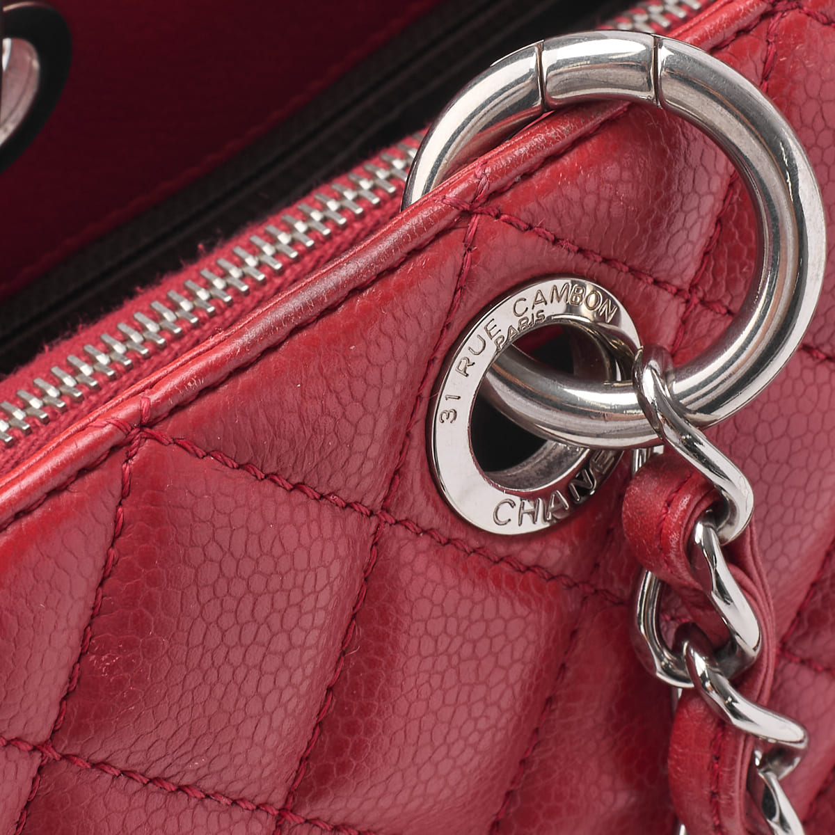 Erweitern Sie Ihre Accessoire-Kollektion mit der exquisiten CHANEL Matelasse GST Coco Mark Double Chain Schultertasche . Diese atemberaubende rote Schultertasche aus luxuriösem Kaviarleder ist nicht nur ein modisches Statement, sondern auch ein Beweis für zeitlose Eleganz und höchste Handwerkskunst.
