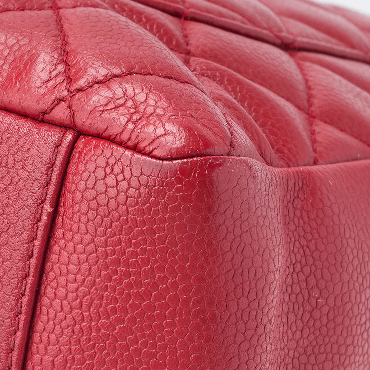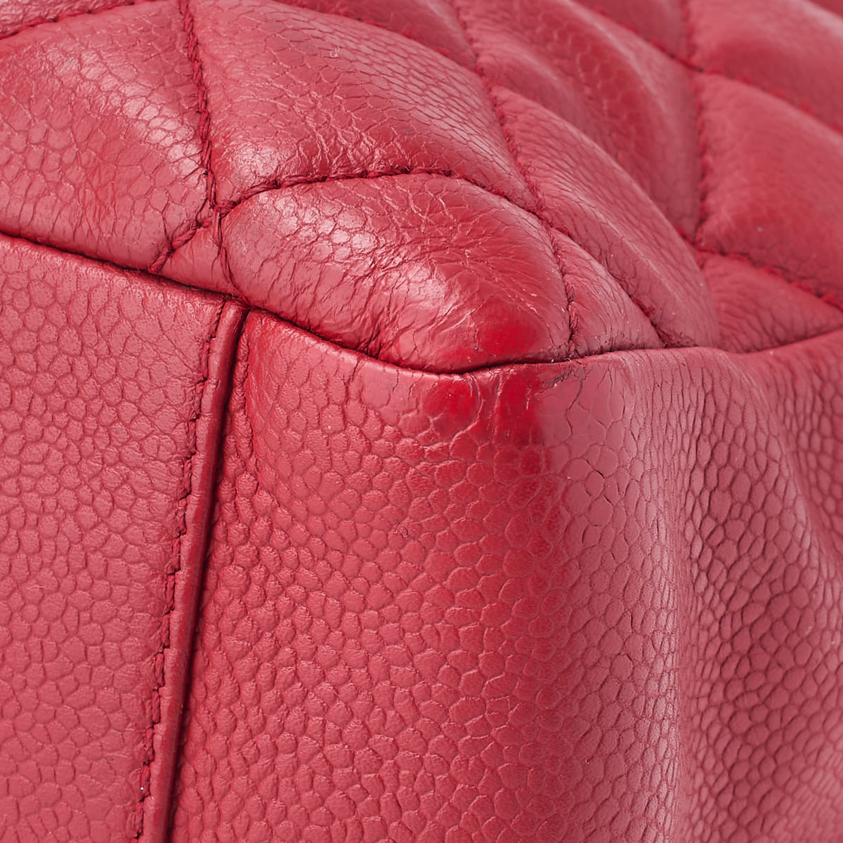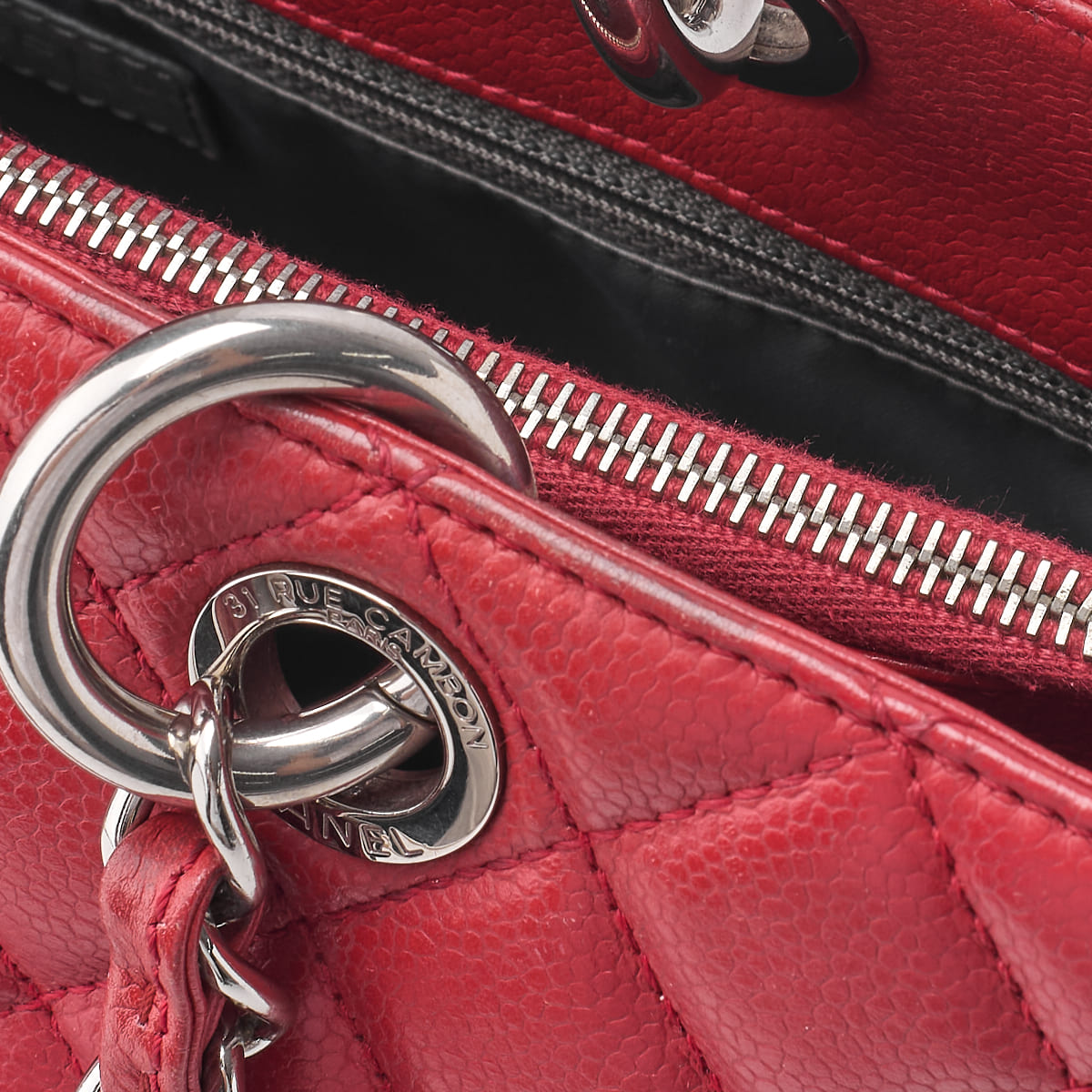 Gebrauchte Umhängetasche, Matelassé, Coco Mark, Kaviarhaut, Rot, Silberfarbene Metallteile, Gebraucht