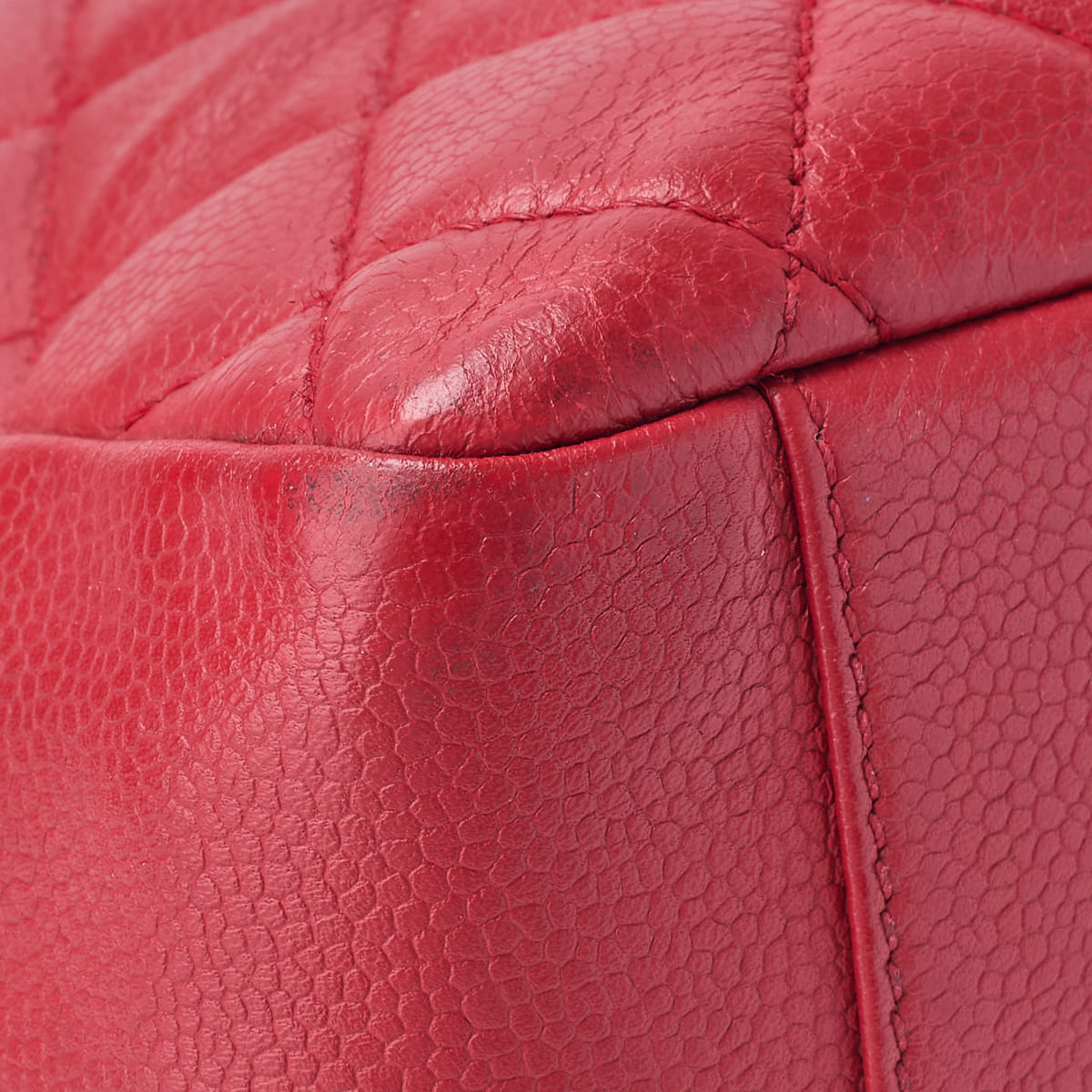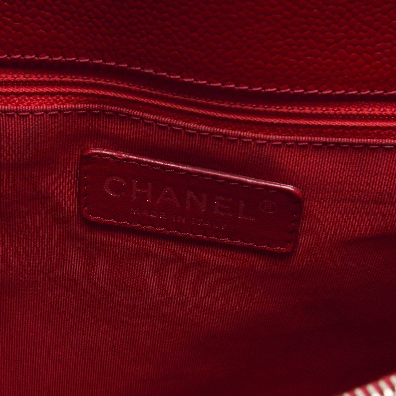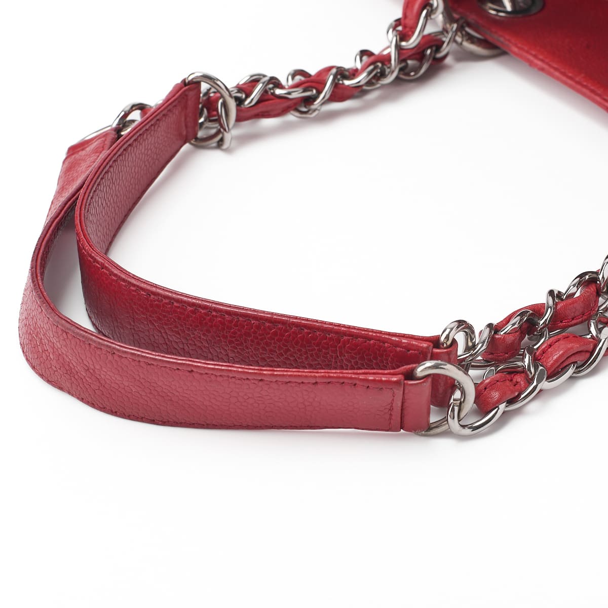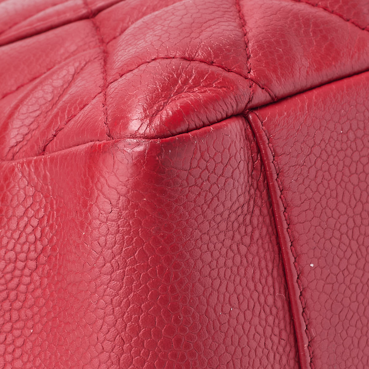 Gebrauchte Umhängetasche, Matelassé, Coco Mark, Kaviarhaut, Rot, Silberfarbene Metallteile, Gebraucht