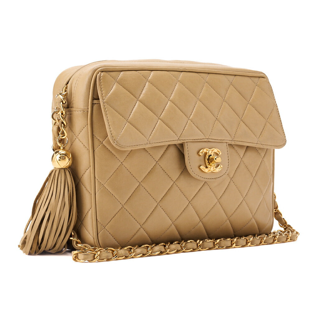 Wir präsentieren die CHANEL Matelasse Outside Flap Fringe Chain Shoulder Bag – eine atemberaubende Mischung aus Eleganz und Raffinesse. Diese Mini-Schultertasche aus luxuriösem Lammleder in einem schicken Beigeton ist das perfekte Accessoire für jede modebewusste Frau.