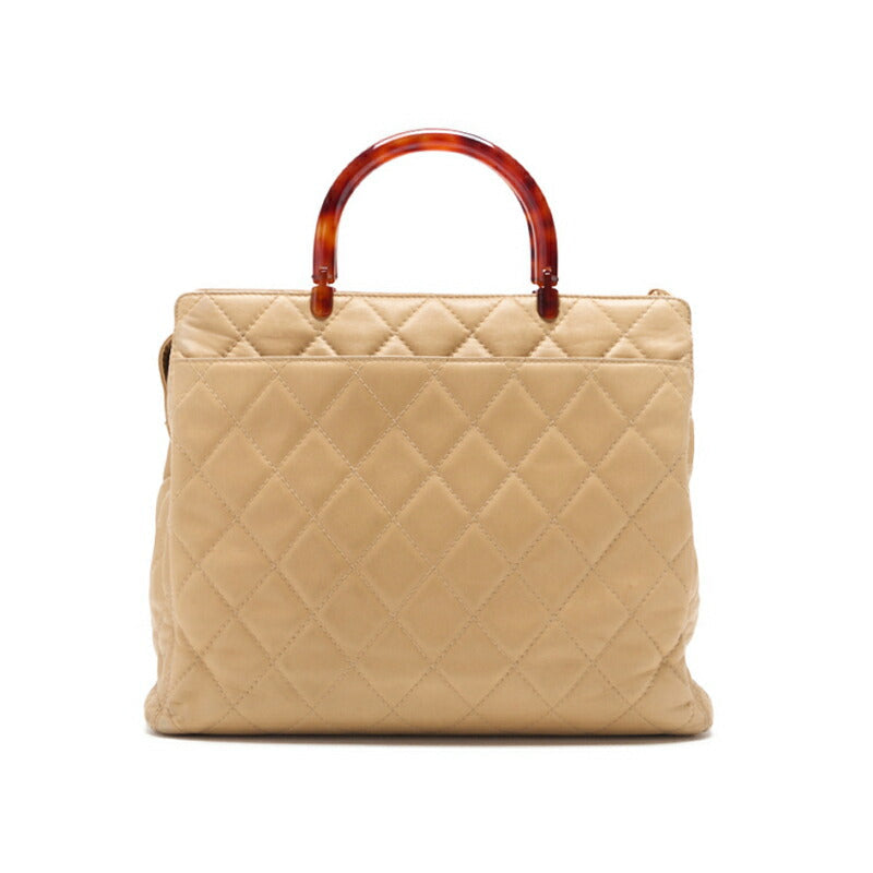 Pre-Owned Tote Bag Matelassé Außenklappe Lammleder Beige Goldfarbene Hardware Pre-Owned