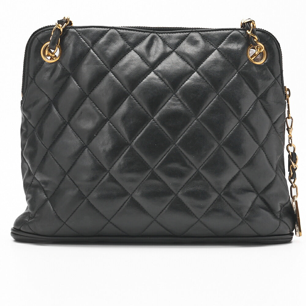 Pre-Owned Schultertasche Matelassé Plate Charm Lammleder Schwarz Goldfarbene Hardware Pre-Owned