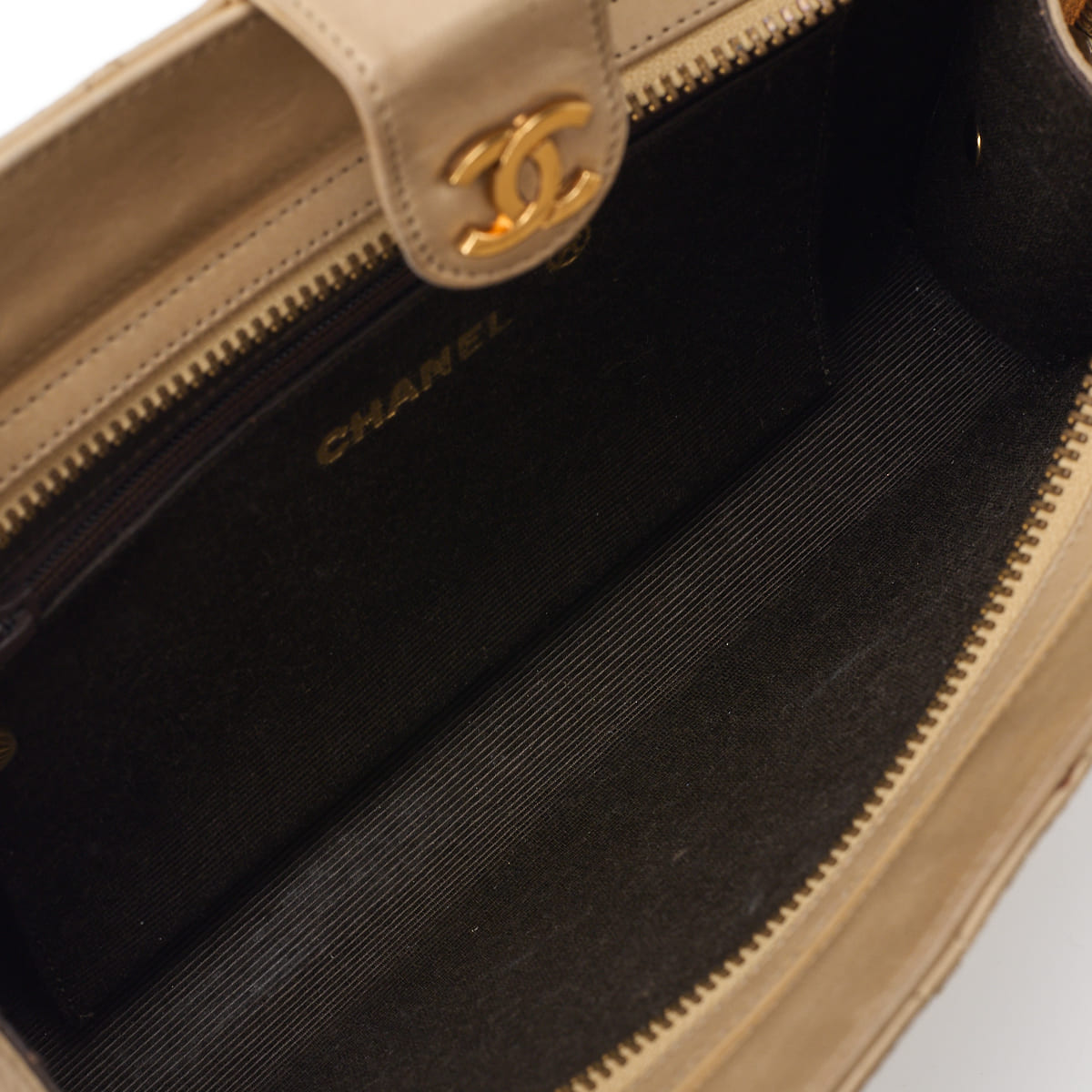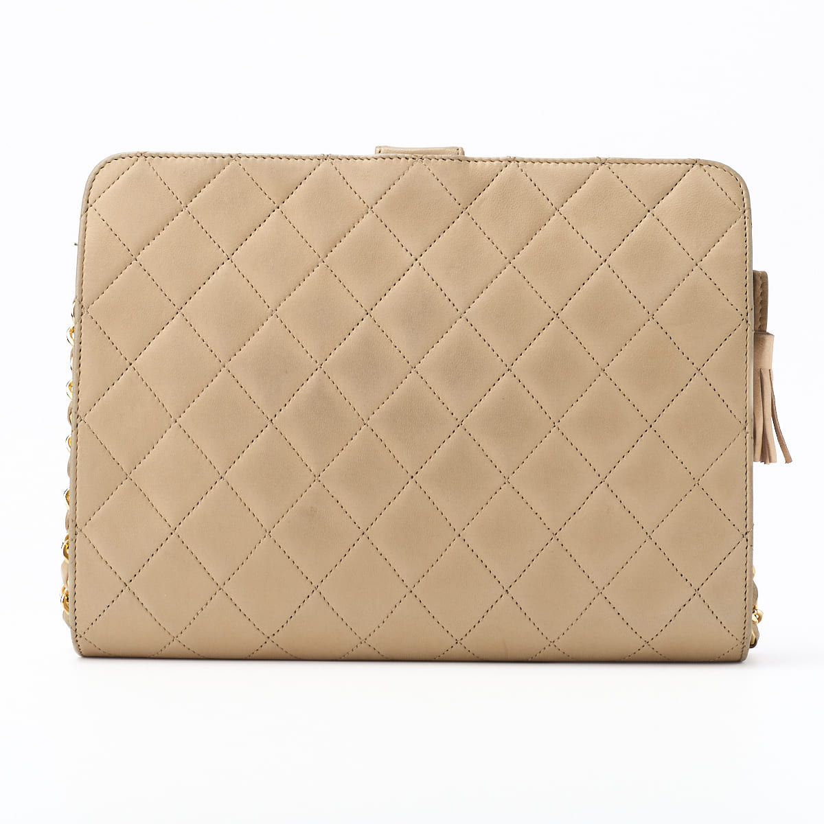 Pre-Owned Schultertasche Matelasse Push Lock Kette Schulter Lammleder Beige Gold-Ton Hardware Pre-Owned