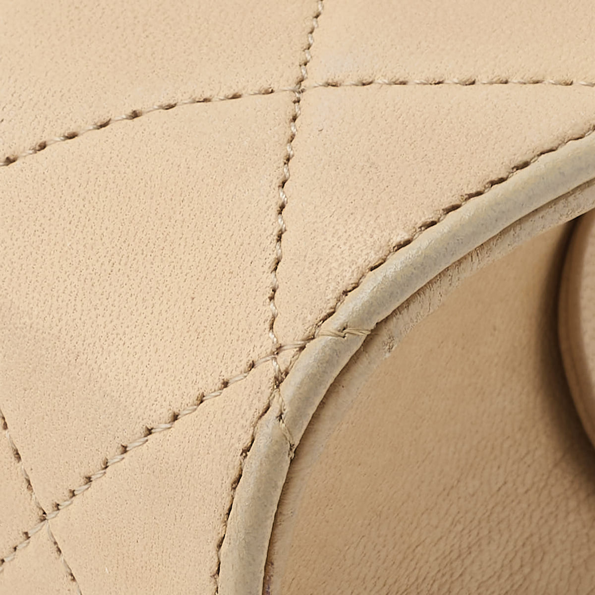Veredeln Sie Ihren Stil mit der CHANEL Matelassé Push Lock Chain Schultertasche aus luxuriösem Lammleder in Beige, verziert mit eleganten Goldbeschlägen. Diese atemberaubende Mini-Schultertasche ist für die moderne Frau konzipiert, die Luxus und Funktionalität schätzt.
