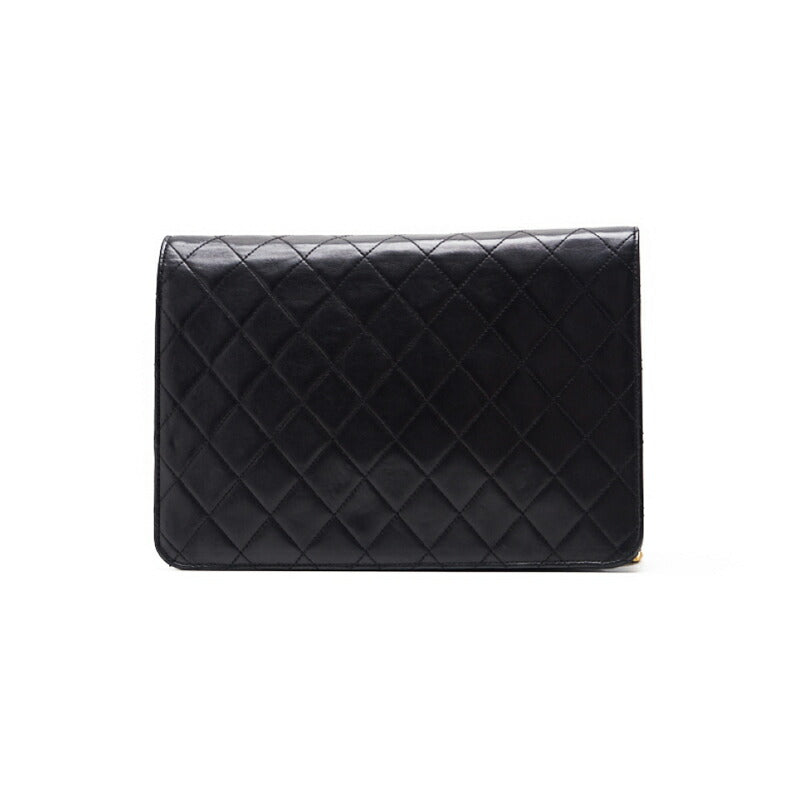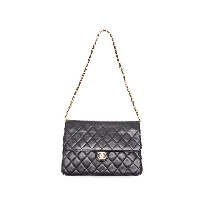 Gebrauchte Umhängetasche, Matelassé Push Lock Chain Shoulder, Lammleder, Schwarz, Goldfarbene Metallteile, Gebraucht