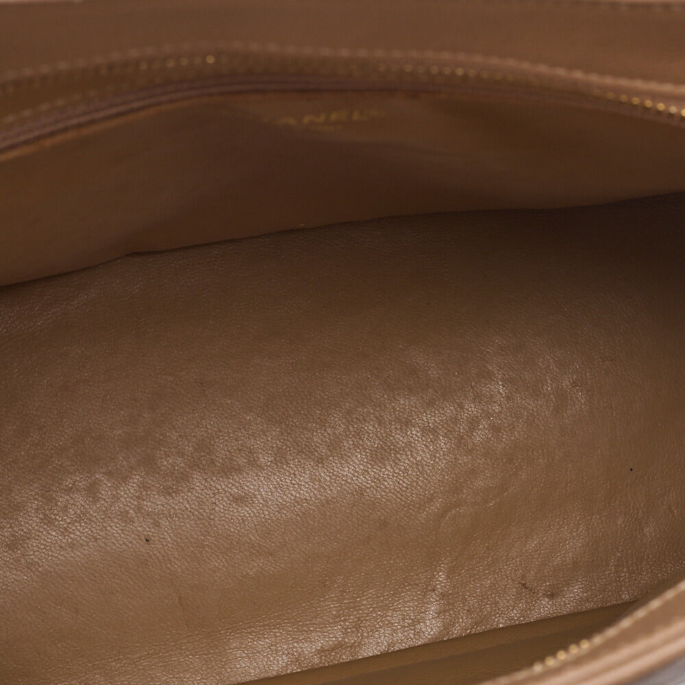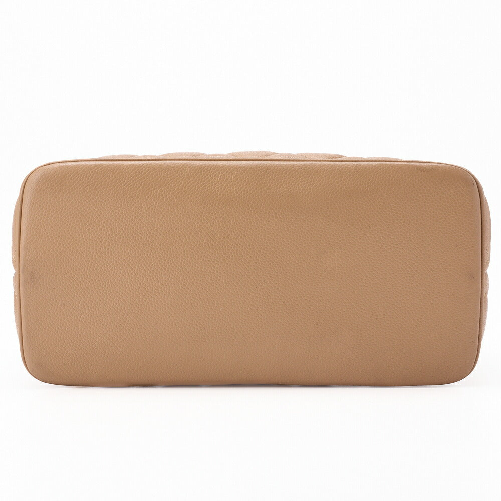 Gebrauchte Tragetasche, Matelassé-Nachdruck, Kaviarhaut, Beige, goldfarbene Metallteile, gebraucht