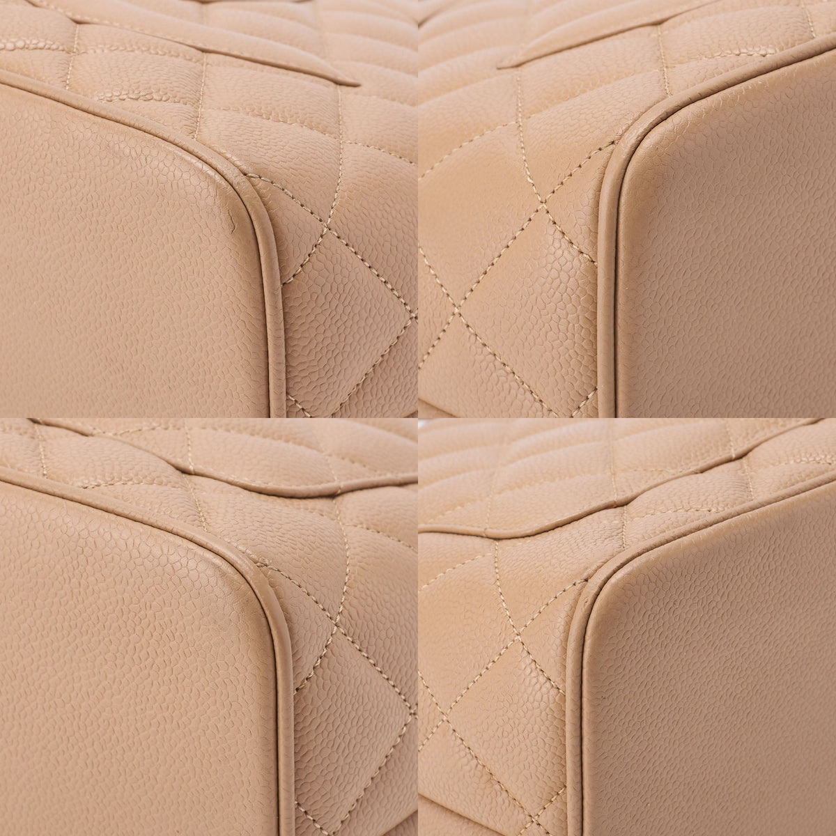 Erweitern Sie Ihre Accessoire-Kollektion mit der exquisiten CHANEL Matelassé Reprint Tote aus luxuriösem Caviar Skin in einem atemberaubenden Beigeton , verziert mit eleganten Goldbeschlägen . Diese zeitlose Damentasche ist nicht nur ein Sinnbild für High Fashion, sondern bietet auch unvergleichliche Funktionalität für die moderne Frau.
