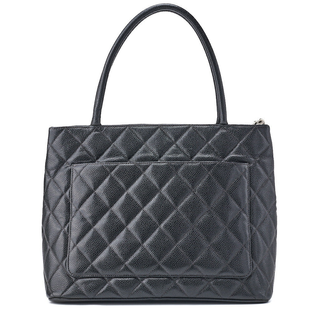 Pre-Owned Tote Bag Matelassé Reprint Caviar Skin Schwarz Silberfarbene Hardware Pre-Owned