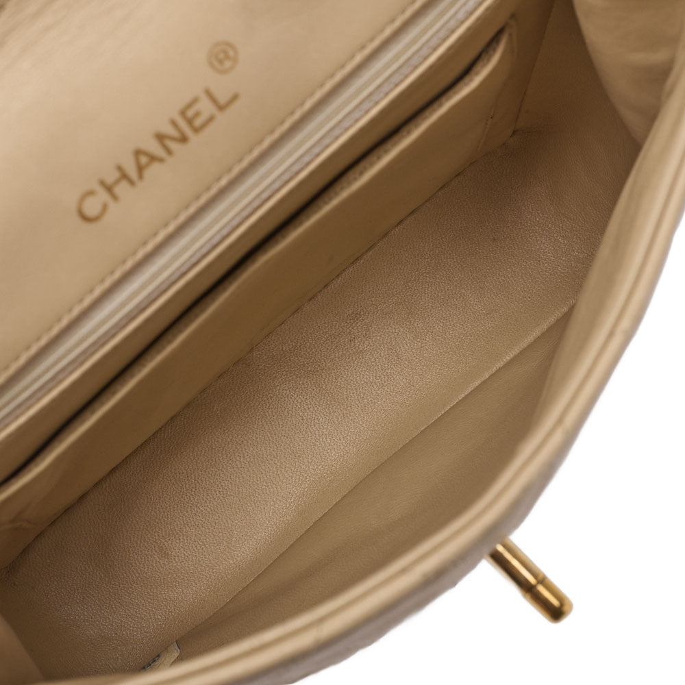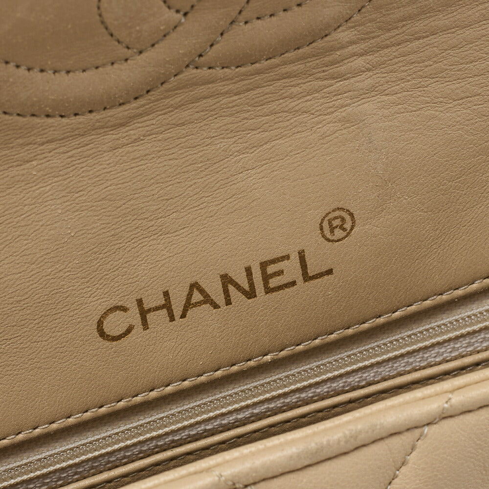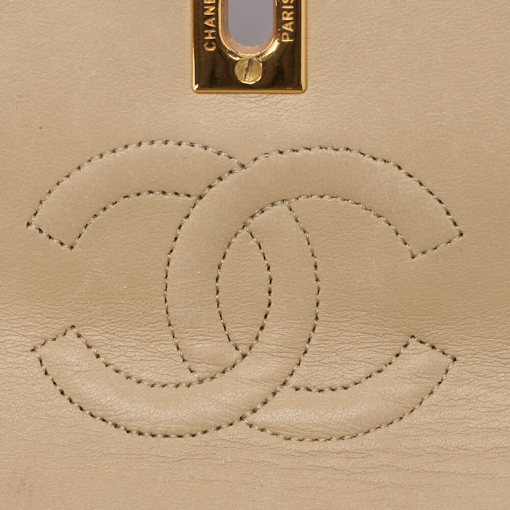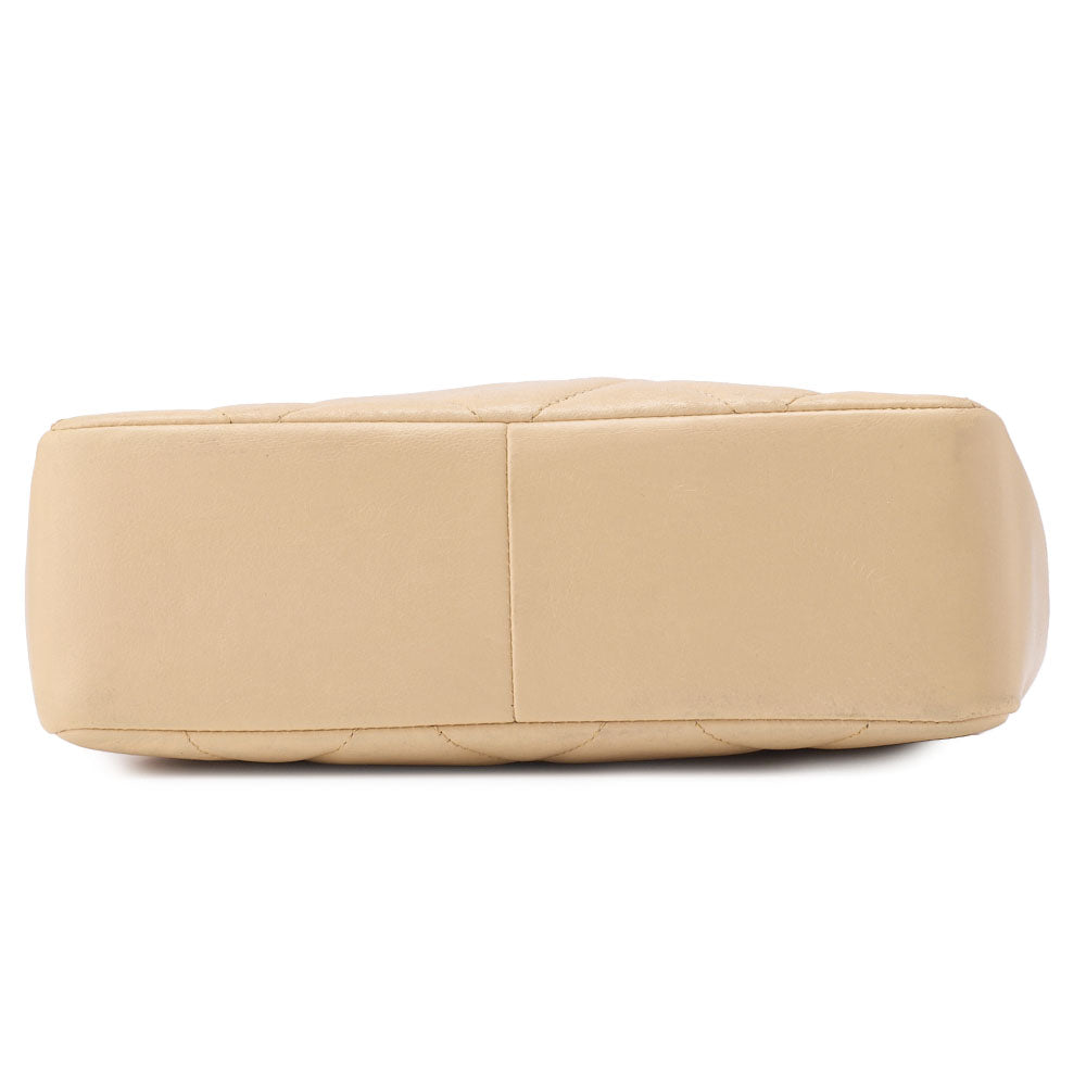 Pre-Owned Schultertasche Matelassé Drehverschluss Lammleder Beige Goldfarbene Hardware Pre-Owned