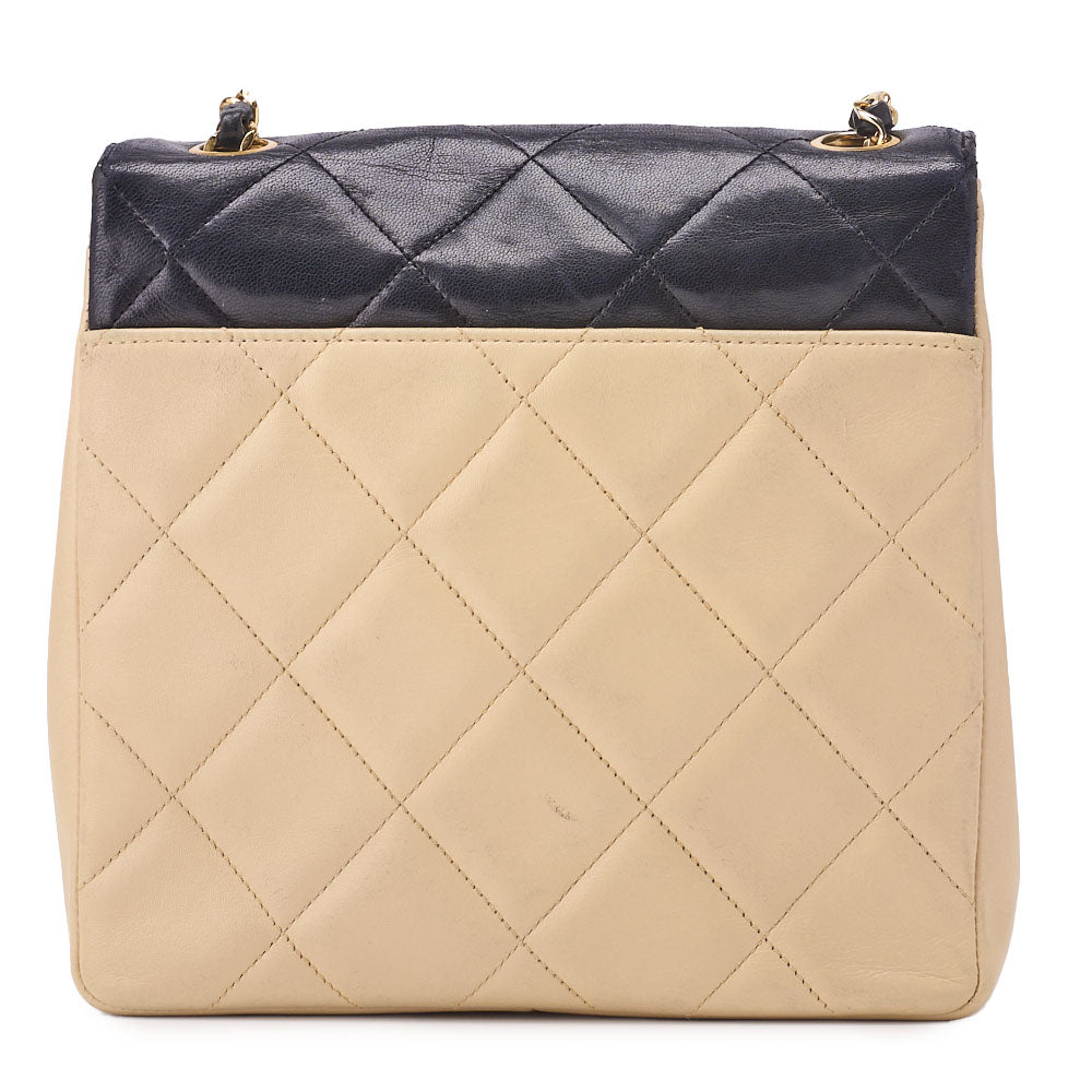 Betreten Sie die Welt der Luxusmode mit der CHANEL Matelassé Turn Lock Bicolor Single Flap Shoulder Bag . Diese atemberaubende Handtasche aus exquisitem Lammleder besticht durch ihr schickes zweifarbiges Design in edlem Beige und Schwarz , akzentuiert durch elegante Goldbeschläge, die jedem Outfit einen Hauch von Opulenz verleihen.