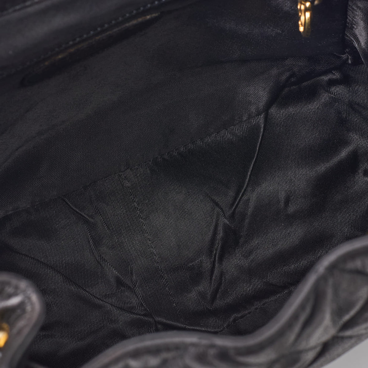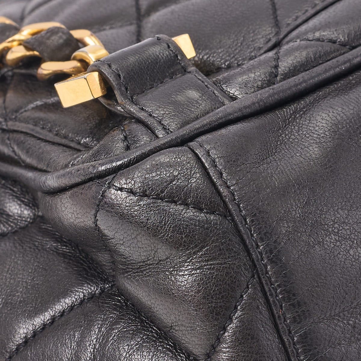 Gebrauchte Rucksacktasche mit Kette, Matelassé, Lammleder, Schwarz, goldfarbene Metallteile, Gebraucht