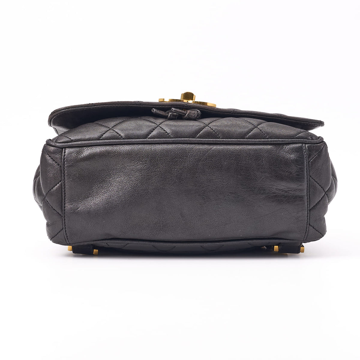 Wir präsentieren den CHANEL Matelassé Turn Lock Chain Rucksack aus exquisitem Lammleder, ein luxuriöses Accessoire, das Eleganz und Funktionalität mühelos vereint. Dieser atemberaubende schwarze Rucksack mit exquisiten Goldbeschlägen ist der perfekte Begleiter für die moderne Frau, die Wert auf High Fashion und Funktionalität legt.