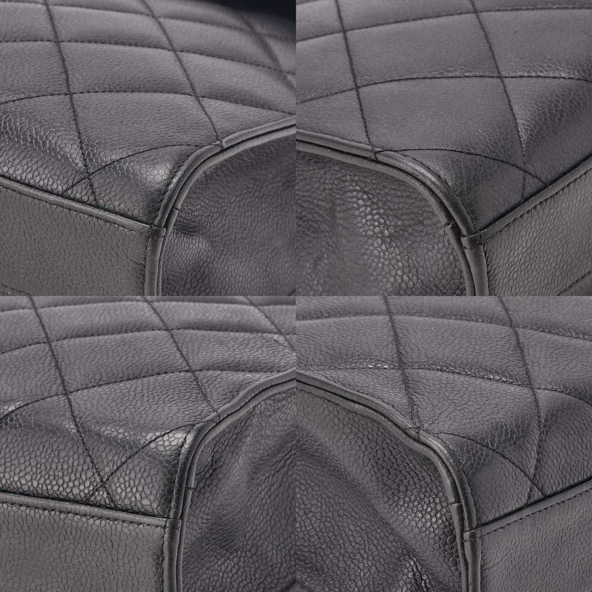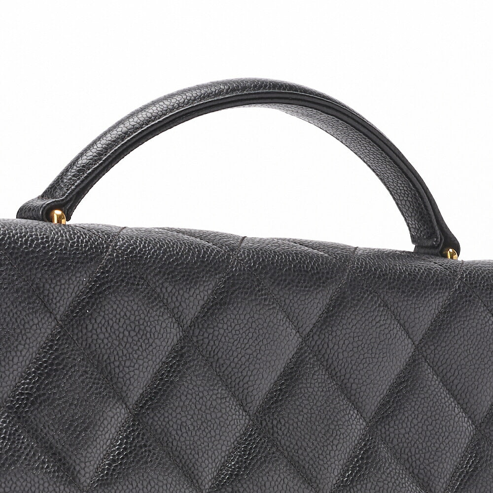 Gebrauchte Handtasche, Matelassé, Drehverschluss, Kaviarhaut, Schwarz, Goldfarbene Metallteile, Gebraucht