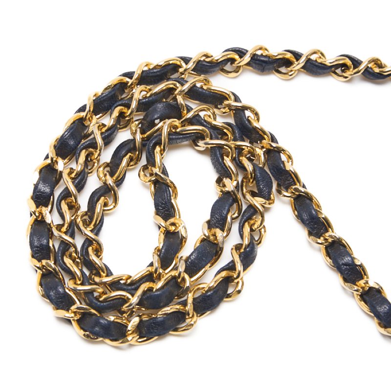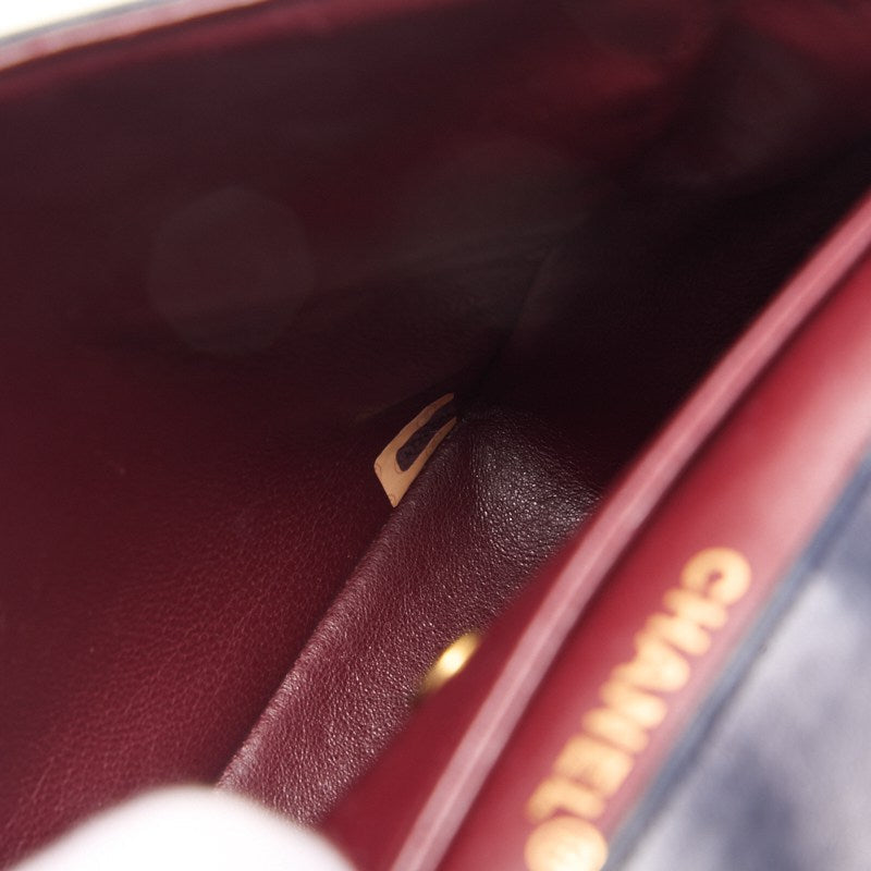 Gebrauchte Umhängetasche, Matelassé-Drehverschluss, Lammleder, Marineblau, goldfarbene Metallteile, gebraucht
