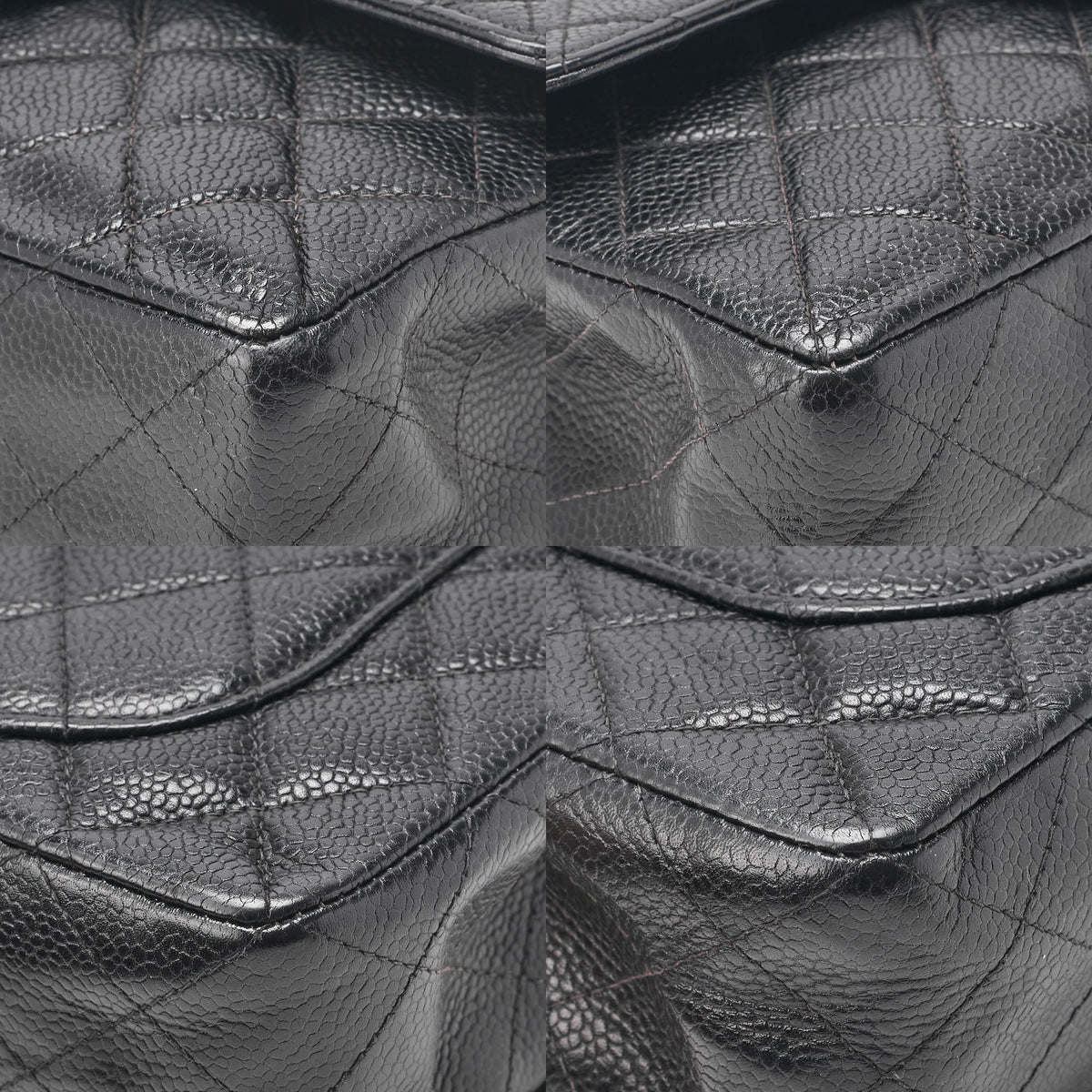 Gebrauchte Umhängetasche, Matelassé Turn Lock Double Flap 23, Kaviarhaut, Schwarz, Silberfarbene Metallteile, Gebraucht