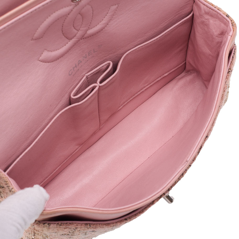 Veredeln Sie Ihren Stil mit der exquisiten CHANEL Matelassé Turn Lock Double Flap 25 Chain Schultertasche in atemberaubendem Jersey-Pink, akzentuiert durch elegante Silberbeschläge. Dieses ikonische Stück ist nicht nur eine Handtasche; es ist ein Statement von Raffinesse und Luxus.