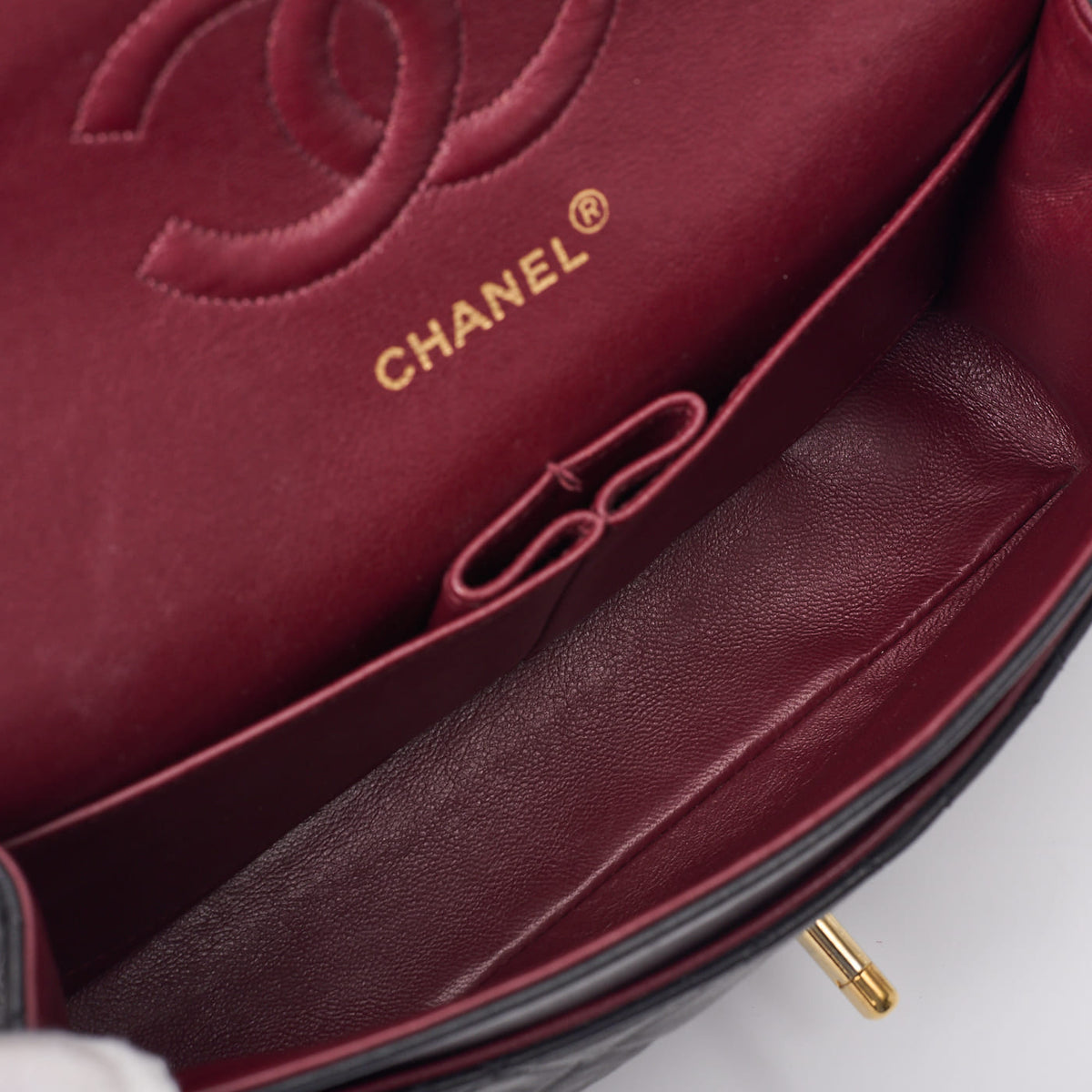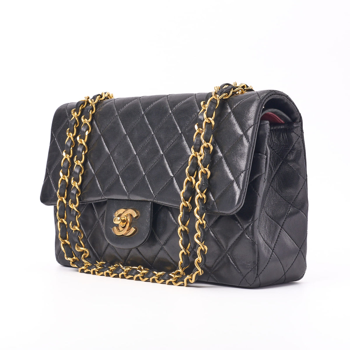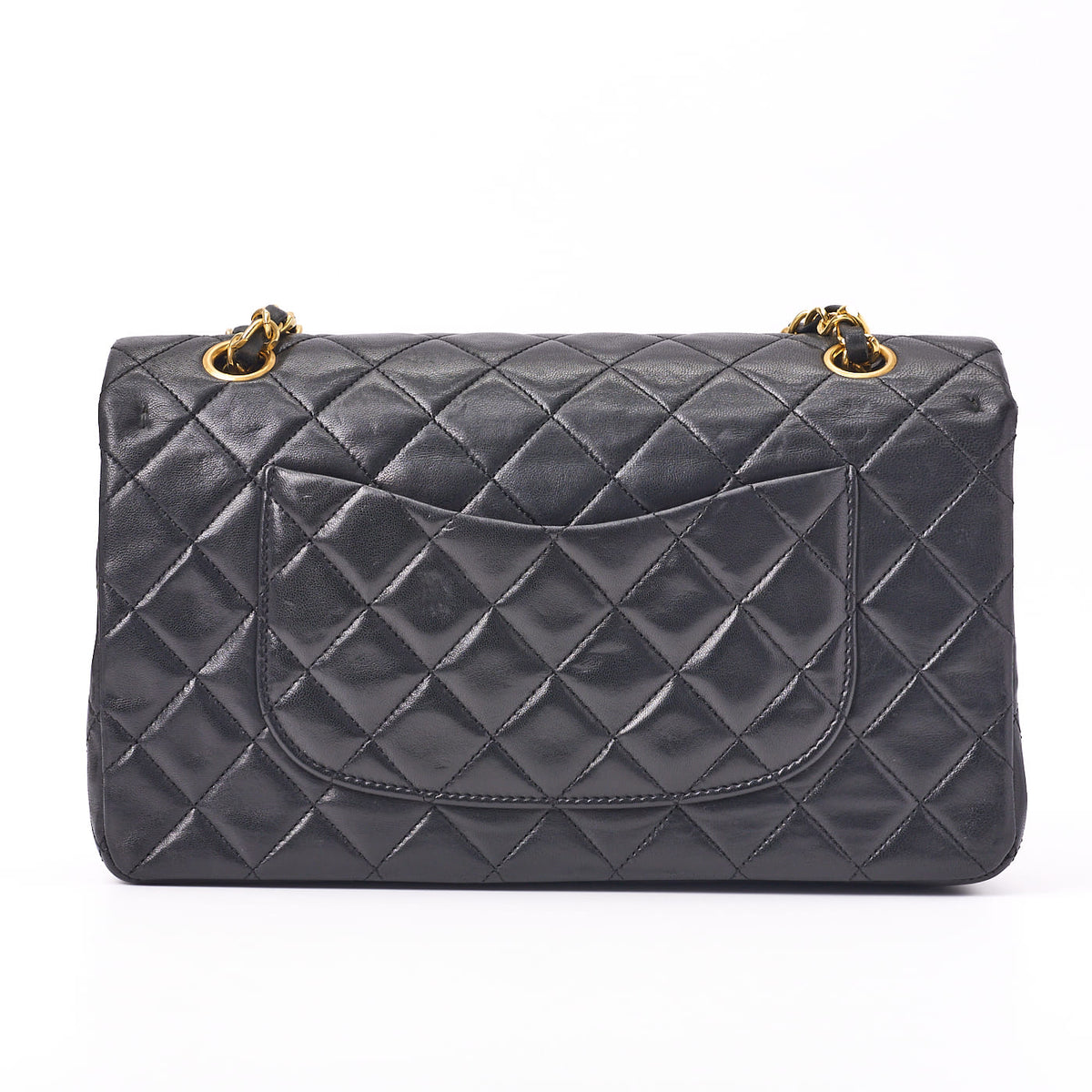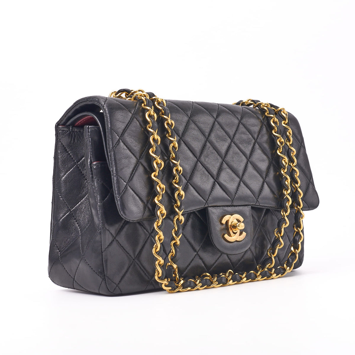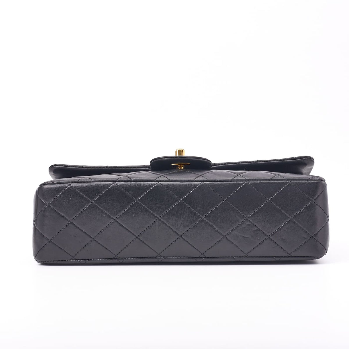Pre-Owned Schultertasche Matelassé Drehverschluss Doppelklappe Lammleder Schwarz Goldfarbene Hardware Pre-Owned